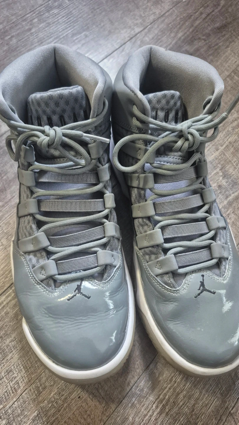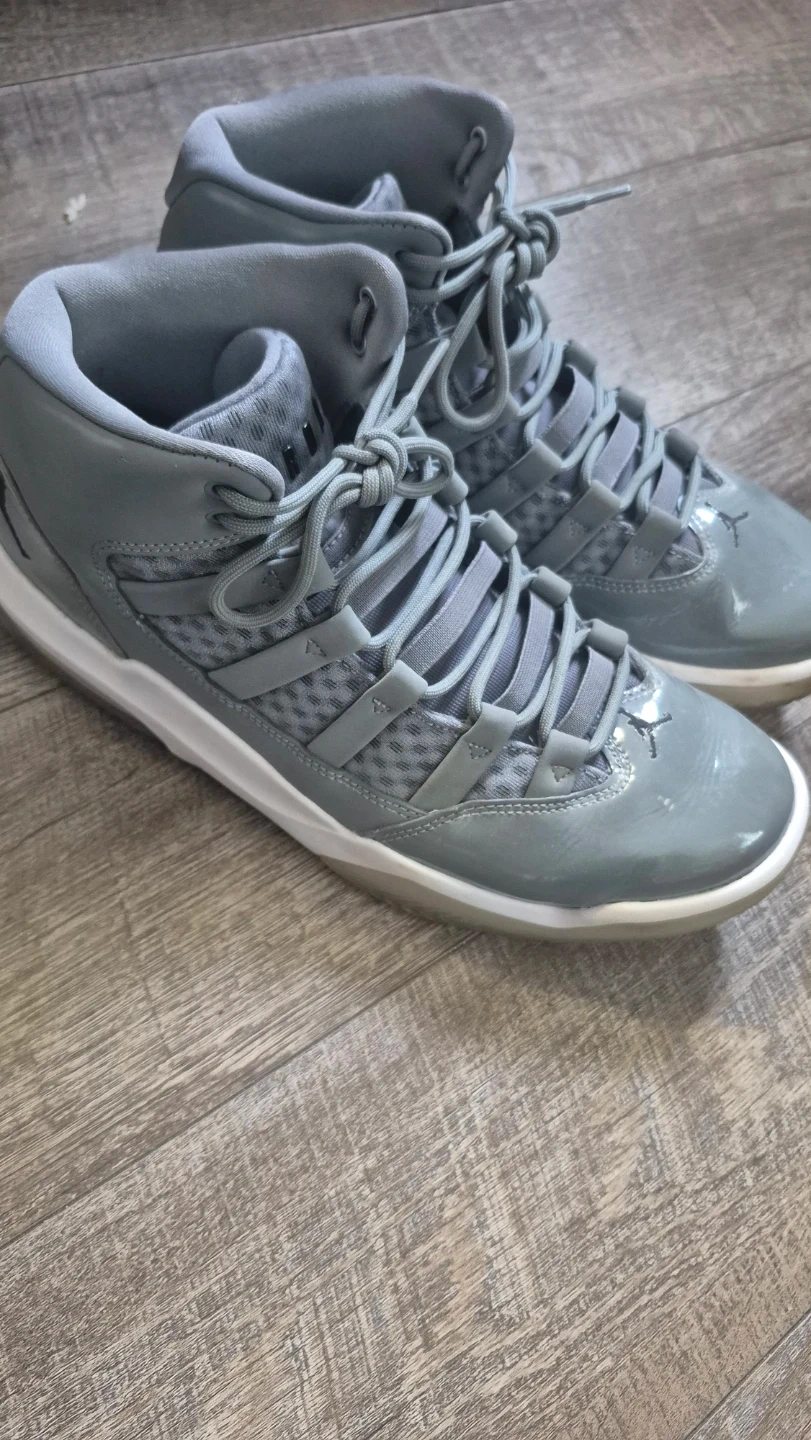 Men's Air Jordan 11 Retro Concord basketball shoes. Size 10 US, 9 UK, 28 cm, 44 EUR. Grey and white colourway. Lace-up closure with a supportive ankle collar. These are great for casual wear or basketball!