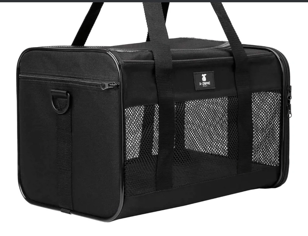 35This X-ZONE PET carrier is perfect for your furry friend! It's airline approved. It features 360° mesh for breathability, scratch-resistant mesh, and an open top for easy access. Dimensions are 19.5" x 12" x 12".