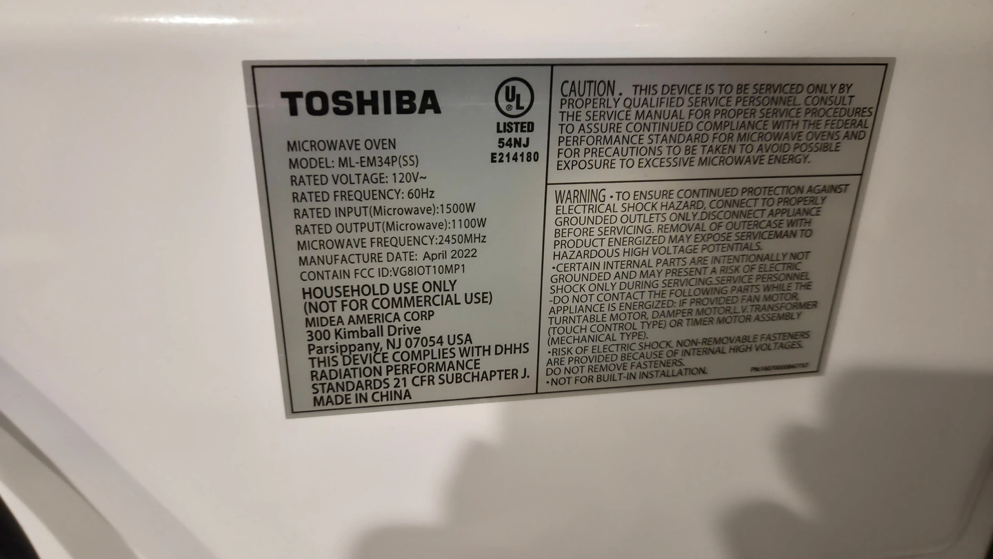 Toshiba Smart Microwave 1.3 Cu Ft 1100W