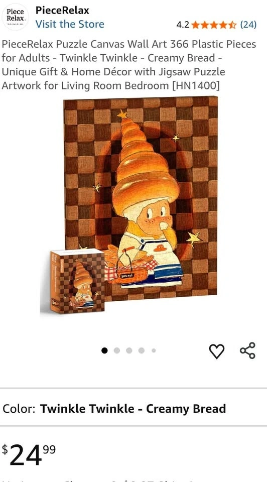 Beautiful canvas-style puzzle that turns into wall art once completed. Twinkle Twinkle - Creamy Bread design.