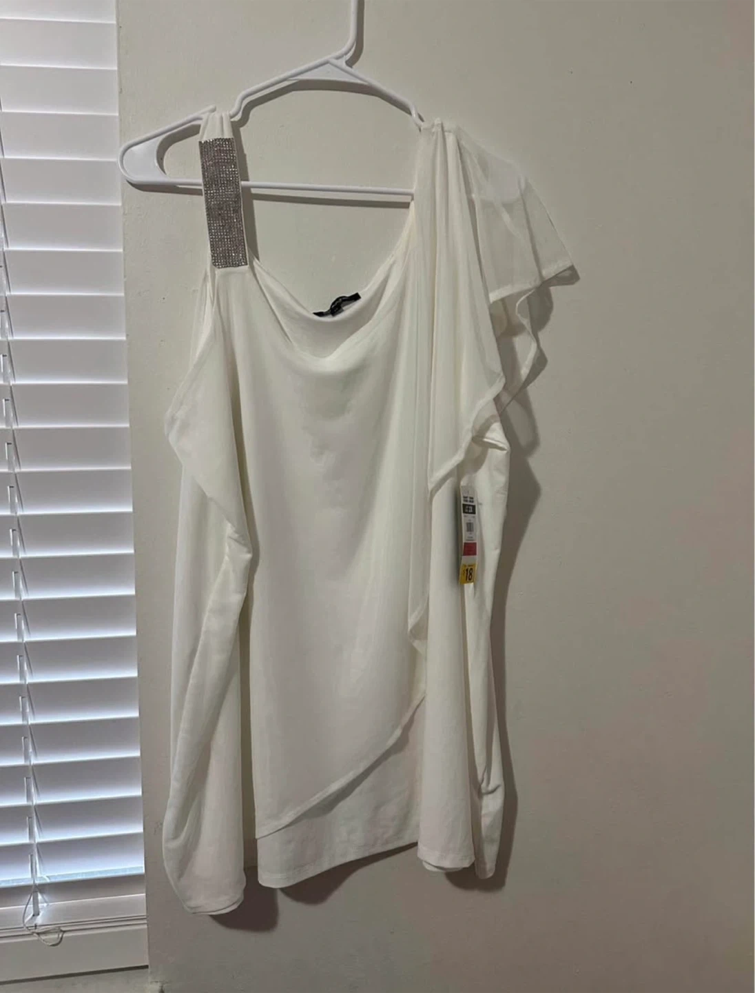 Brought this beautiful stylish white one-shoulder top with a shimmering beaded strap detail out in Winnipeg never worn our loss your gain