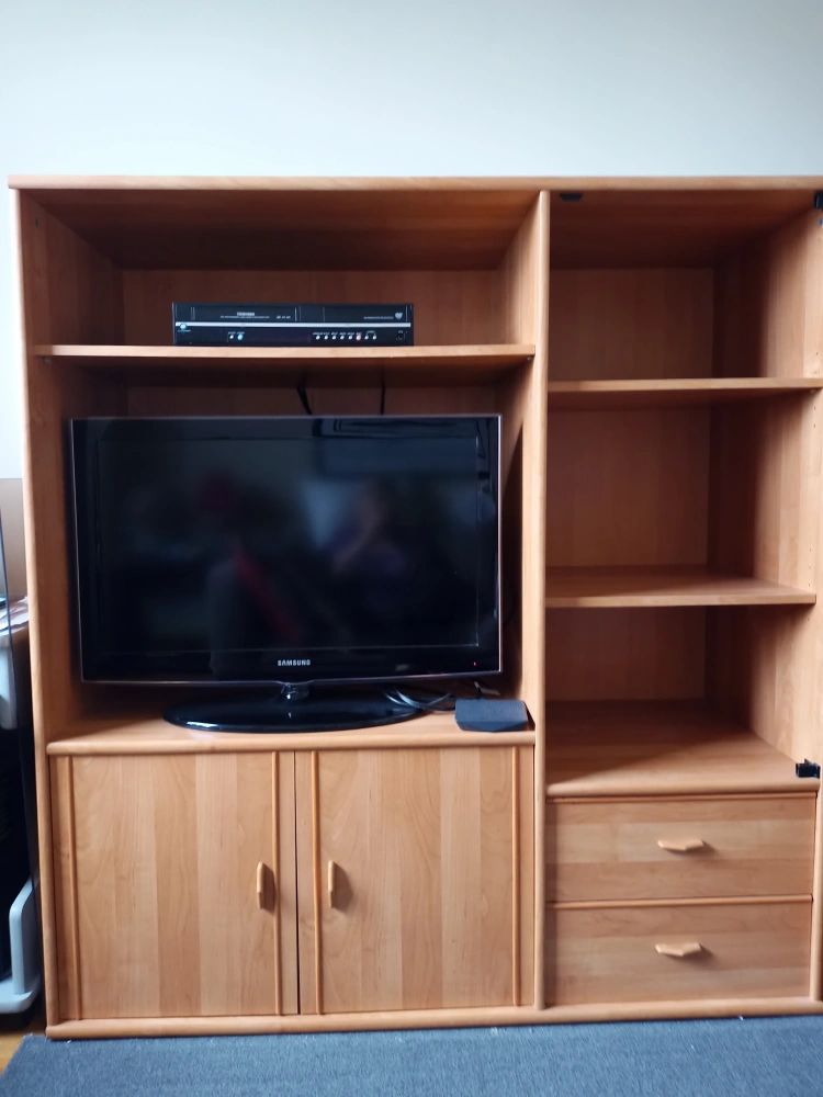 Giving away a wooden entertainment unit. It features shelves, drawers, and cabinet space, perfect for organizing your TV and media devices. It's in good condition, ready to add storage and style to your living room or entertainment area