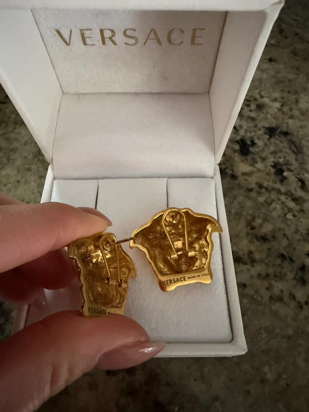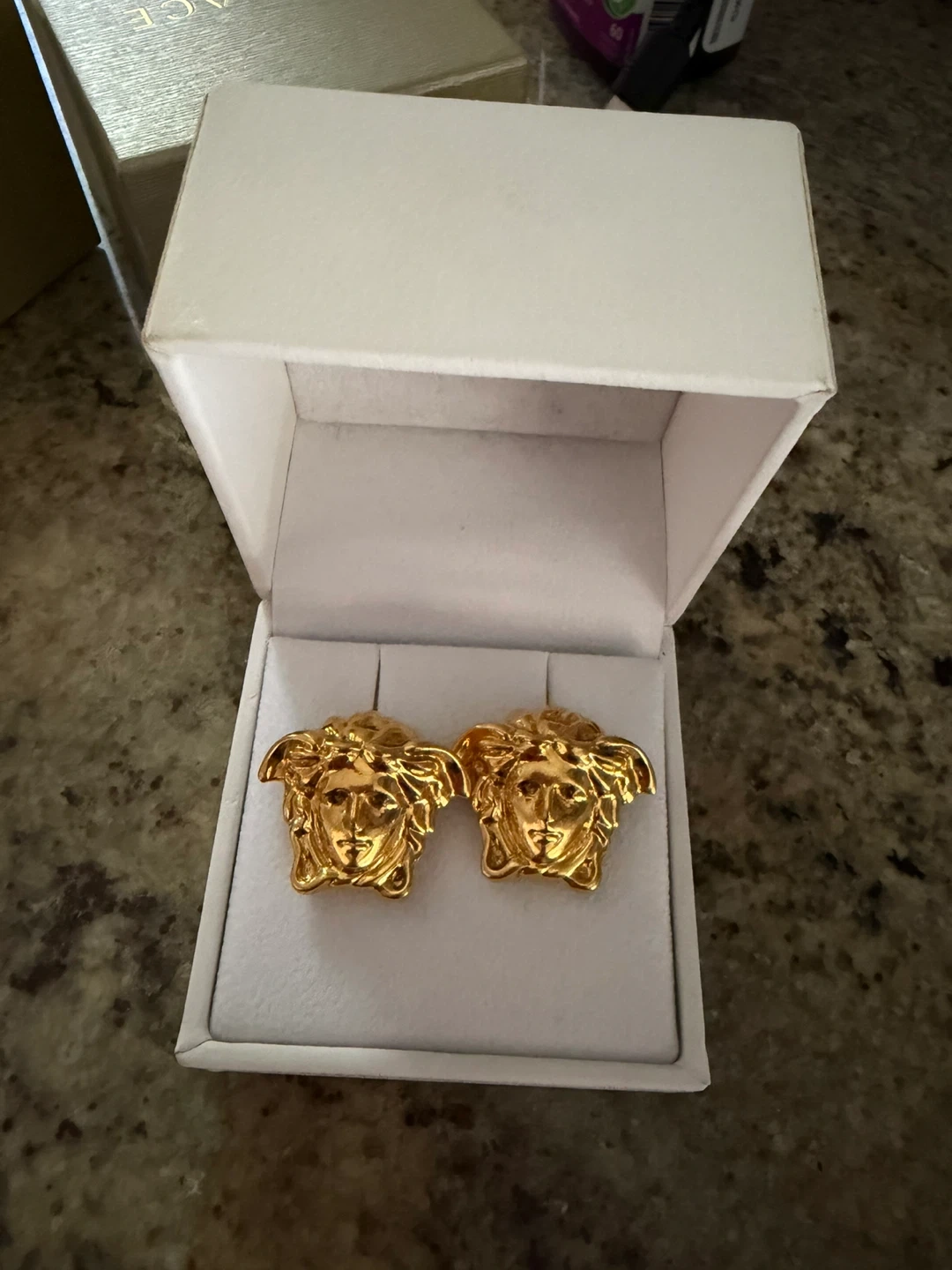 Buy & SellVersace Medusa Head Earrings GoldVersace Medusa Head Earrings Gold$198Authentic Versace gold-tone Medusa head earrings. These statement earrings come in their original Versace box. Made in Italy. Purchased holts YorkdaleConditionGoodBrandVersaceWHERE TO MEETTim HortonsView MapSELLERverifiedGloriaBayview Woods - Steeles620 reviews1 chats·1 favorites·62 viewsSEND CHAT TO SELLERHi Gloria! I’m interested in your listing.Hi Gloria! I’m interested in your listing.Get the Karrot app to chatSign In to chat