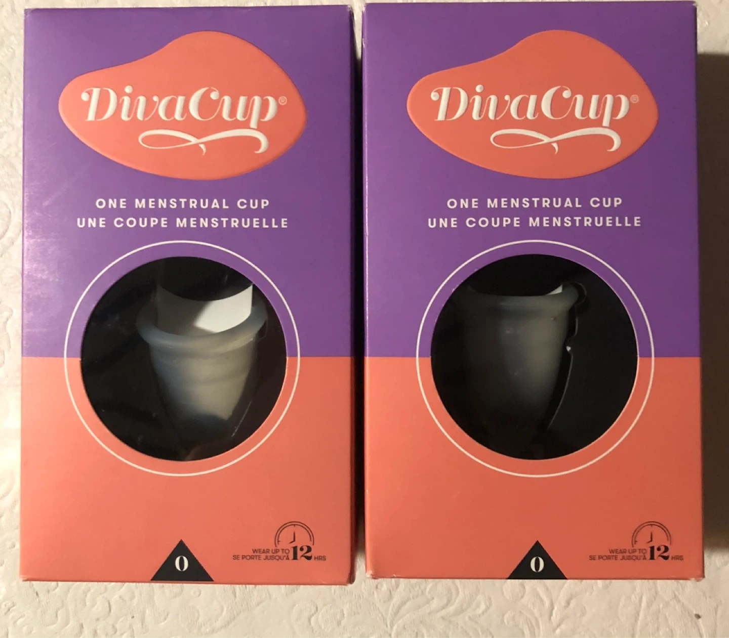 This listing is for one DivaCup menstrual cup. It's designed for a wear time of up to 12 hours. This cup is a size 0.