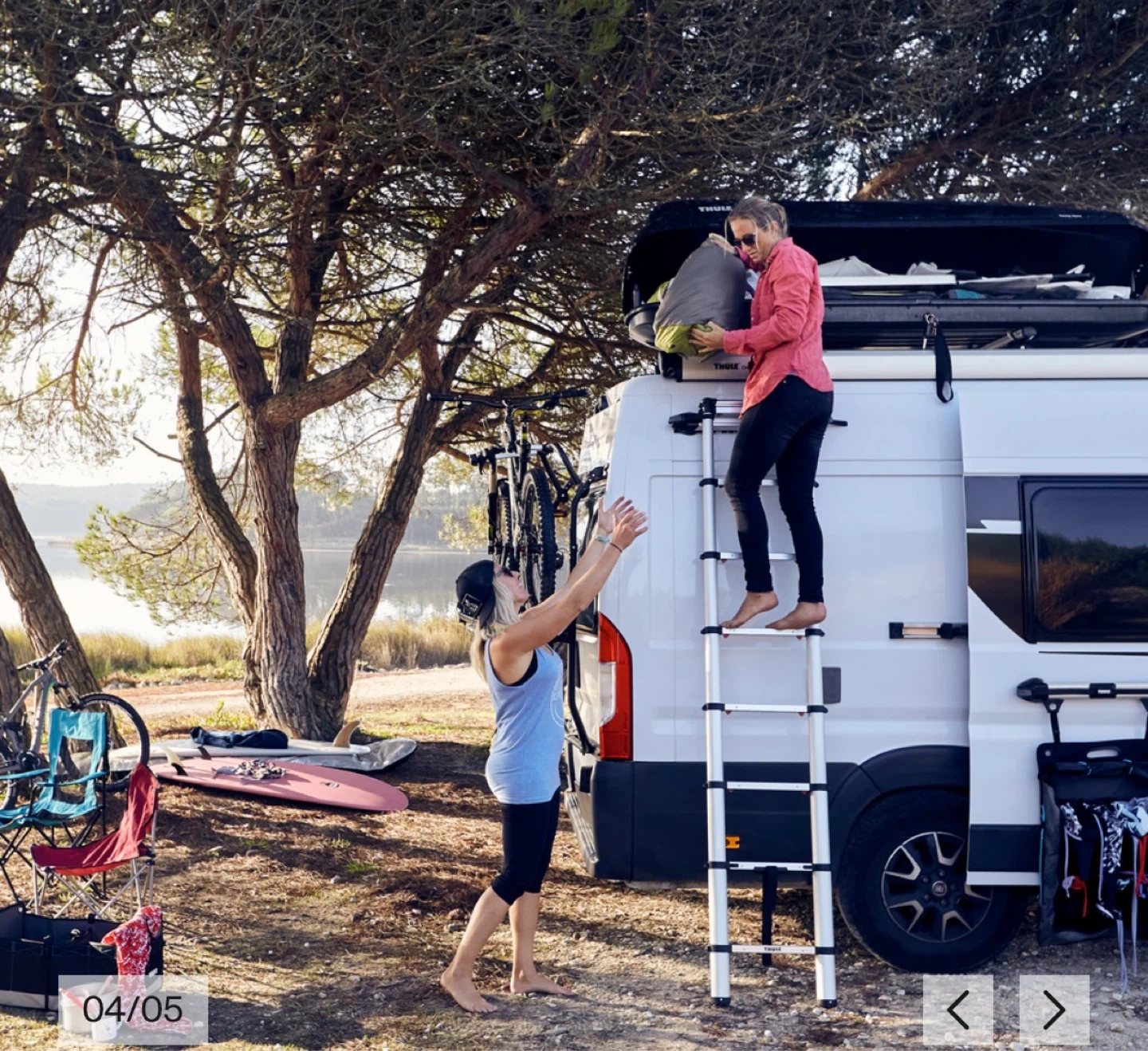 Telescopic ladder for easy access to roof-mounted accessories - safely installed using fixation kit.