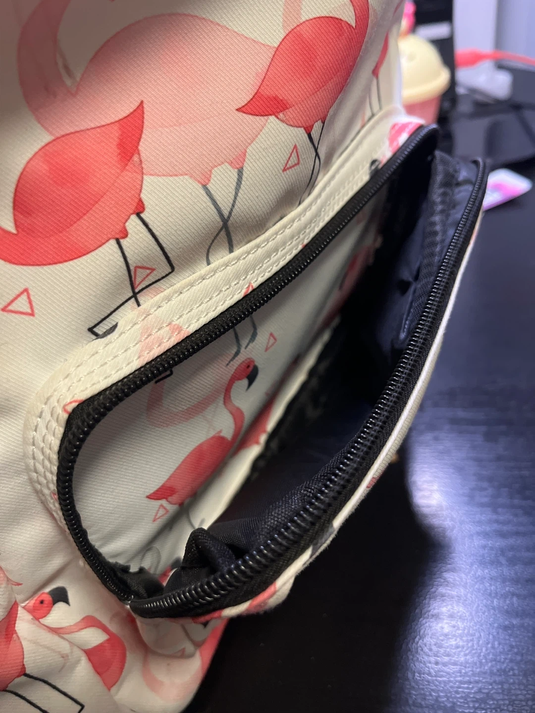 Selling a cute Laura Cullinane backpack with a fun flamingo pattern! It's in great condition and perfect for carrying your essentials. It has adjustable straps and multiple compartments inside