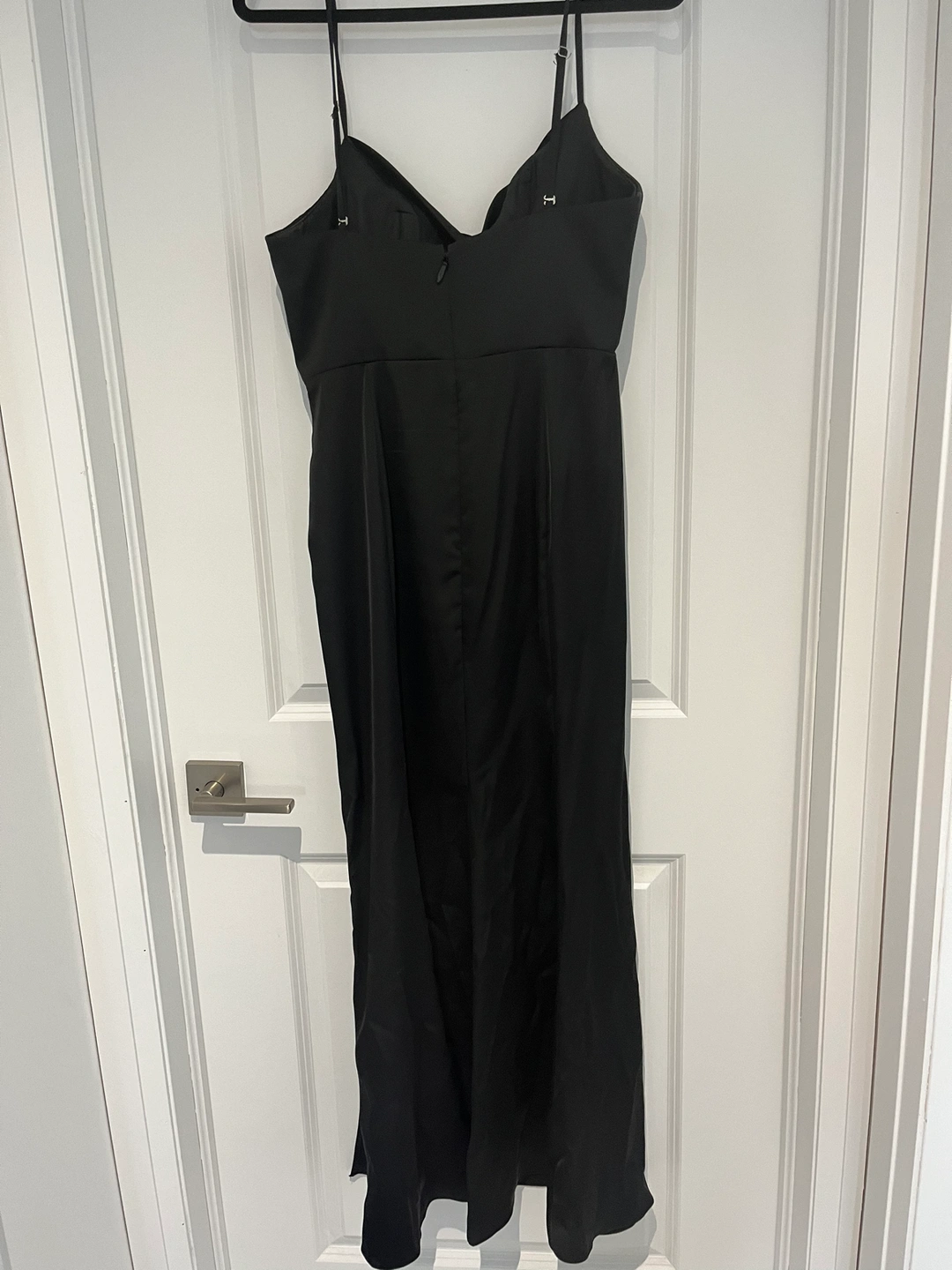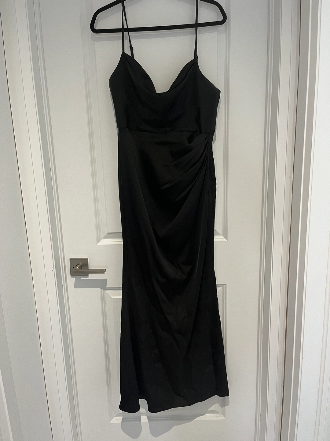 Black High Slit Elegant Pleated Stretch Satin Floor-Length Dress