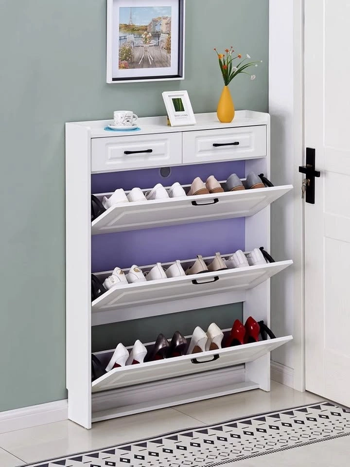 This is a brand new, in-box Simply Modern shoe cabinet. It's made from solid wood and eco board (poplar + pine) and features a waterproof finish. The top has a display shelf. Available in two depths: 17cm (with 1 drawer) or 24cm (with 2 drawers). Widths are 50cm, 80cm, or 100cm, all at a height of 120cm.