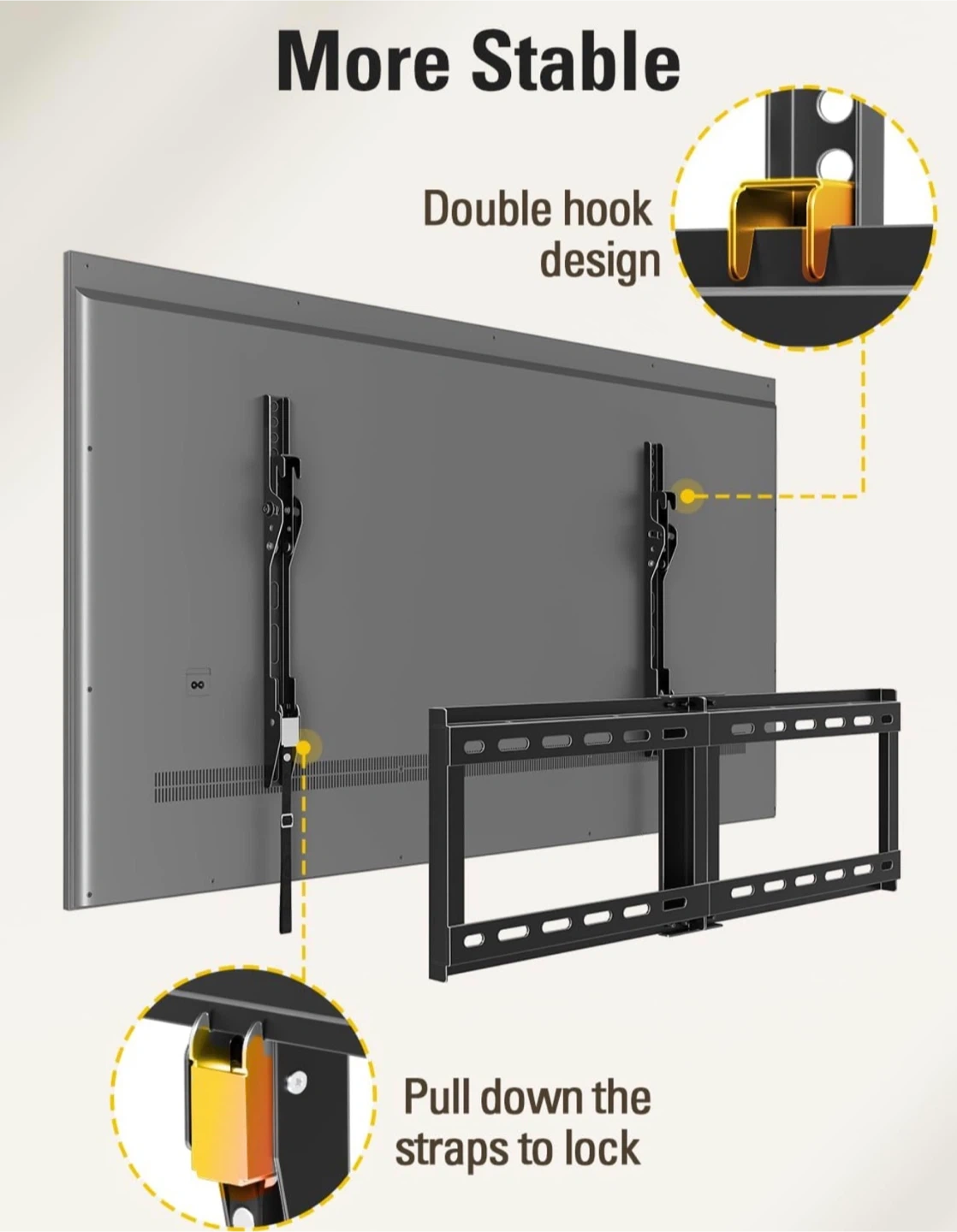 This TV wall mount supports screens from 37" to 75". It offers a tilt function for anti-glare viewing and a double hook design for stability. It's built to hold up to 132 lbs. Includes a level for easy installation.