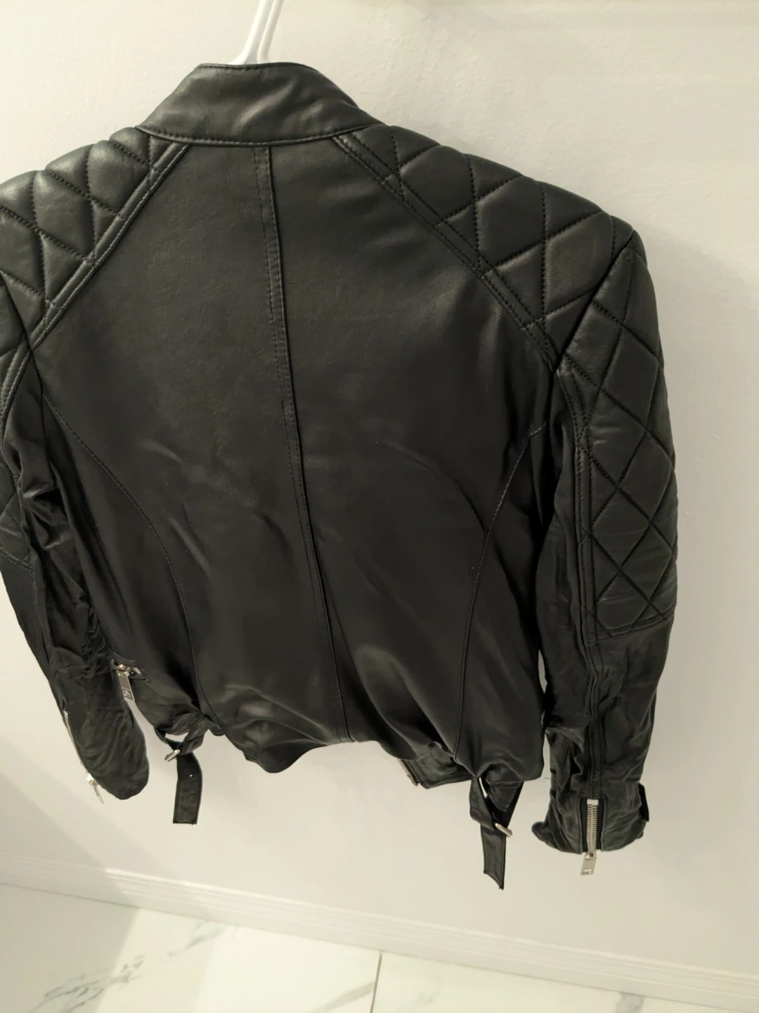 Burberry Black Leather Quilted Biker Jacket
