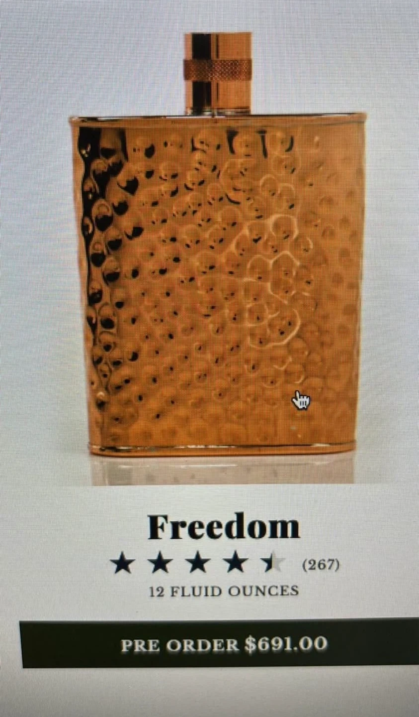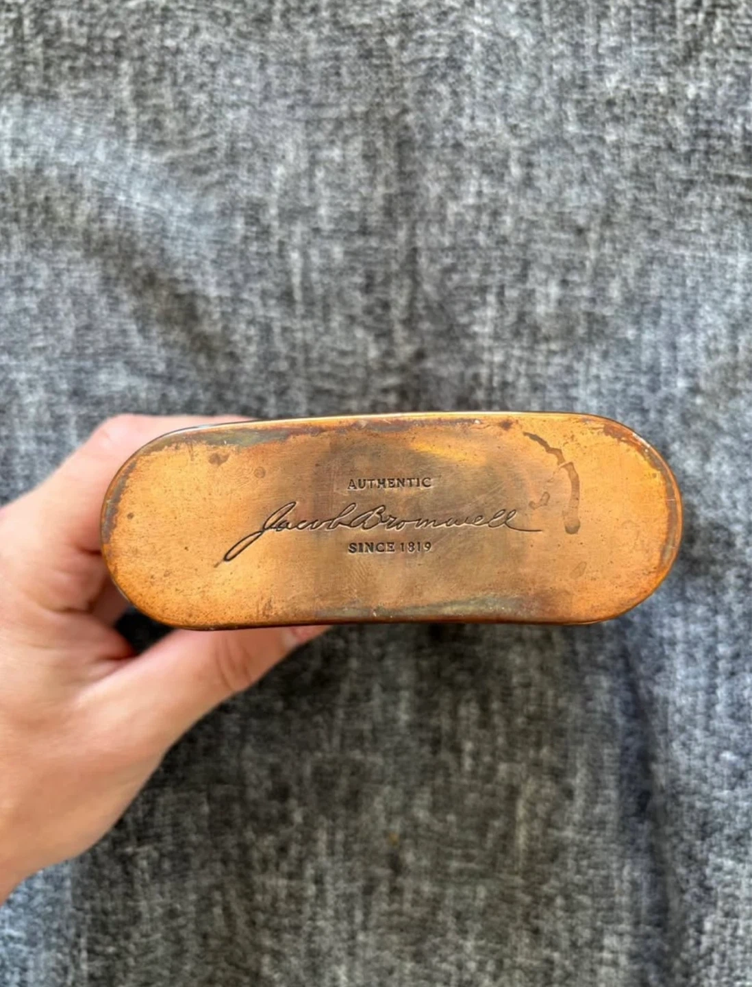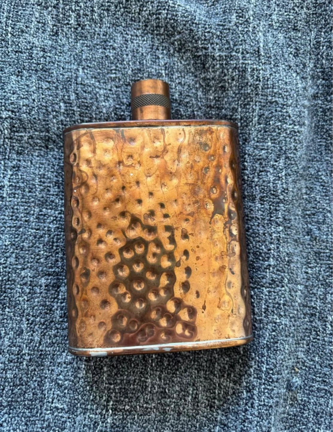 This is a Jacob Bromwell "Freedom" flask. It's 12 fluid ounces. Handmade copper construction with a hammered finish. Authentic Jacob Bromwell since 1819.