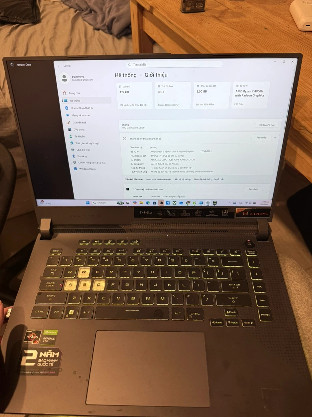 This ASUS ROG Strix G15 laptop is equipped with an AMD Ryzen 7 processor and NVIDIA GeForce GTX 1650 graphics. It features 8 GB of RAM and a 477 GB SSD for fast storage. The display supports a 144Hz refresh rate, ideal for gaming!