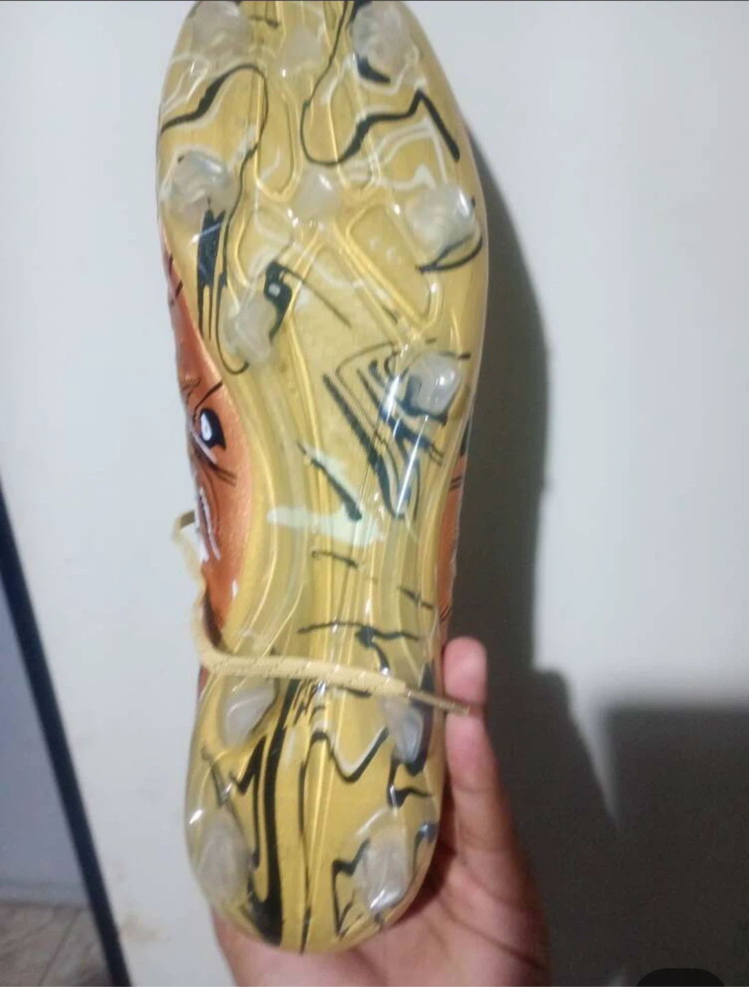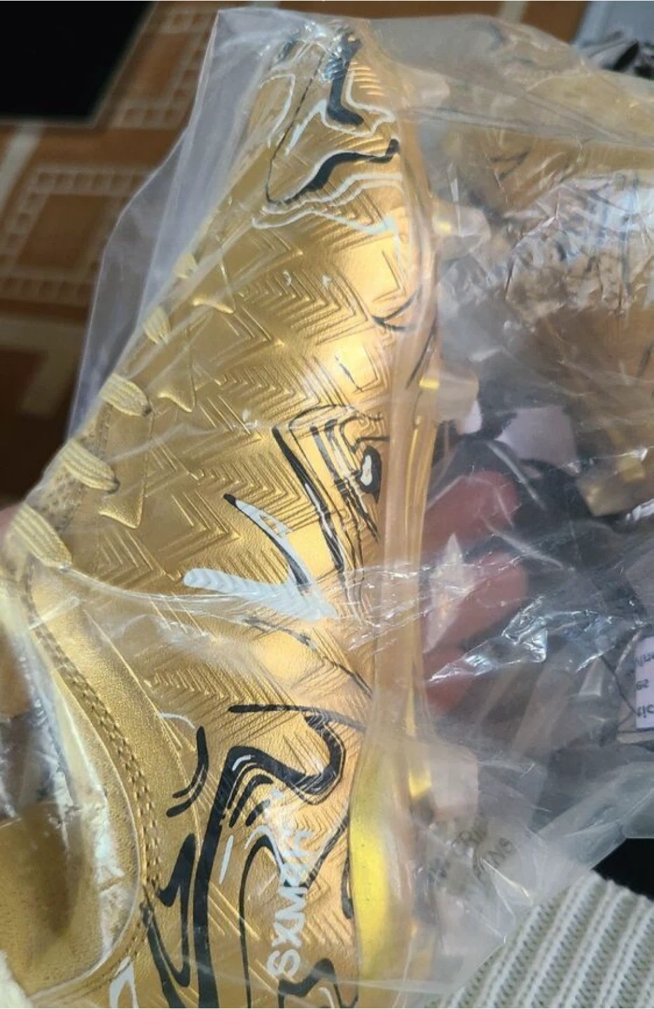 Selling a pair of gold soccer cleats. They have a unique design and are in great condition. Available in multiple sizes.