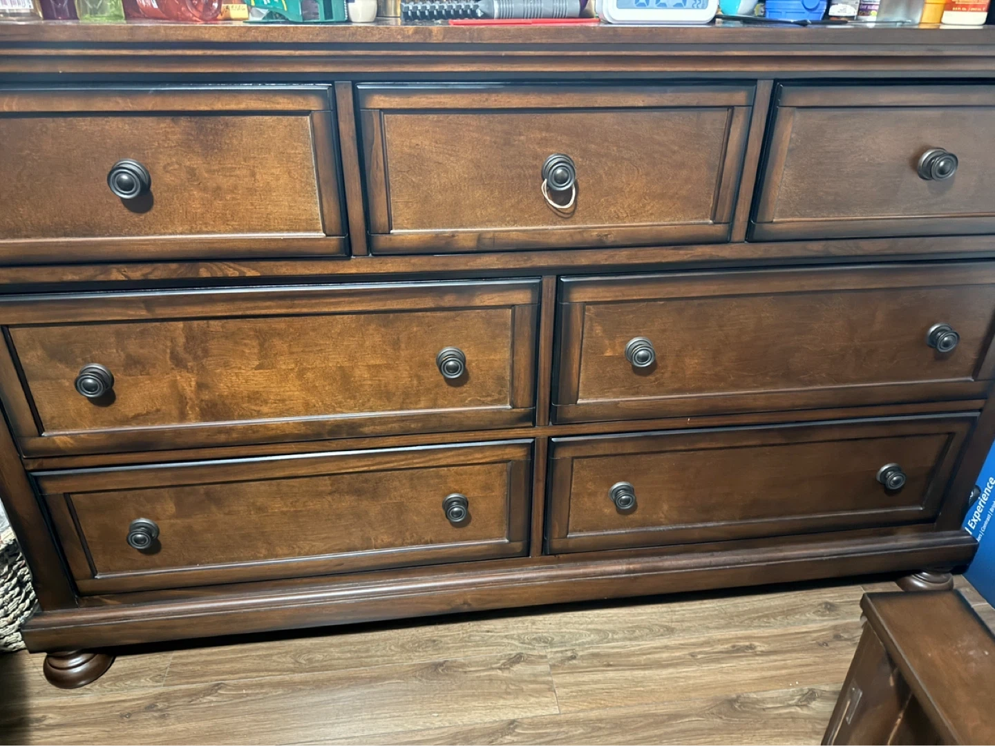 This is a brown wooden chest of drawers, perfect for bedroom storage. It features multiple drawers for organizing clothes and other items. The wood construction offers durability and a classic look.dm for prices