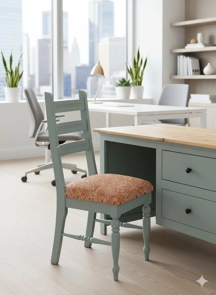 Chair and desk are not ikea....they are solid wood Made in Canada. Very good quality...paint is peeling on chair, can be easily fixed. Also button down style chair. Comes from a smoke and pet free home.