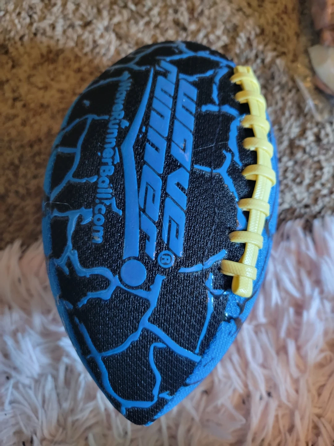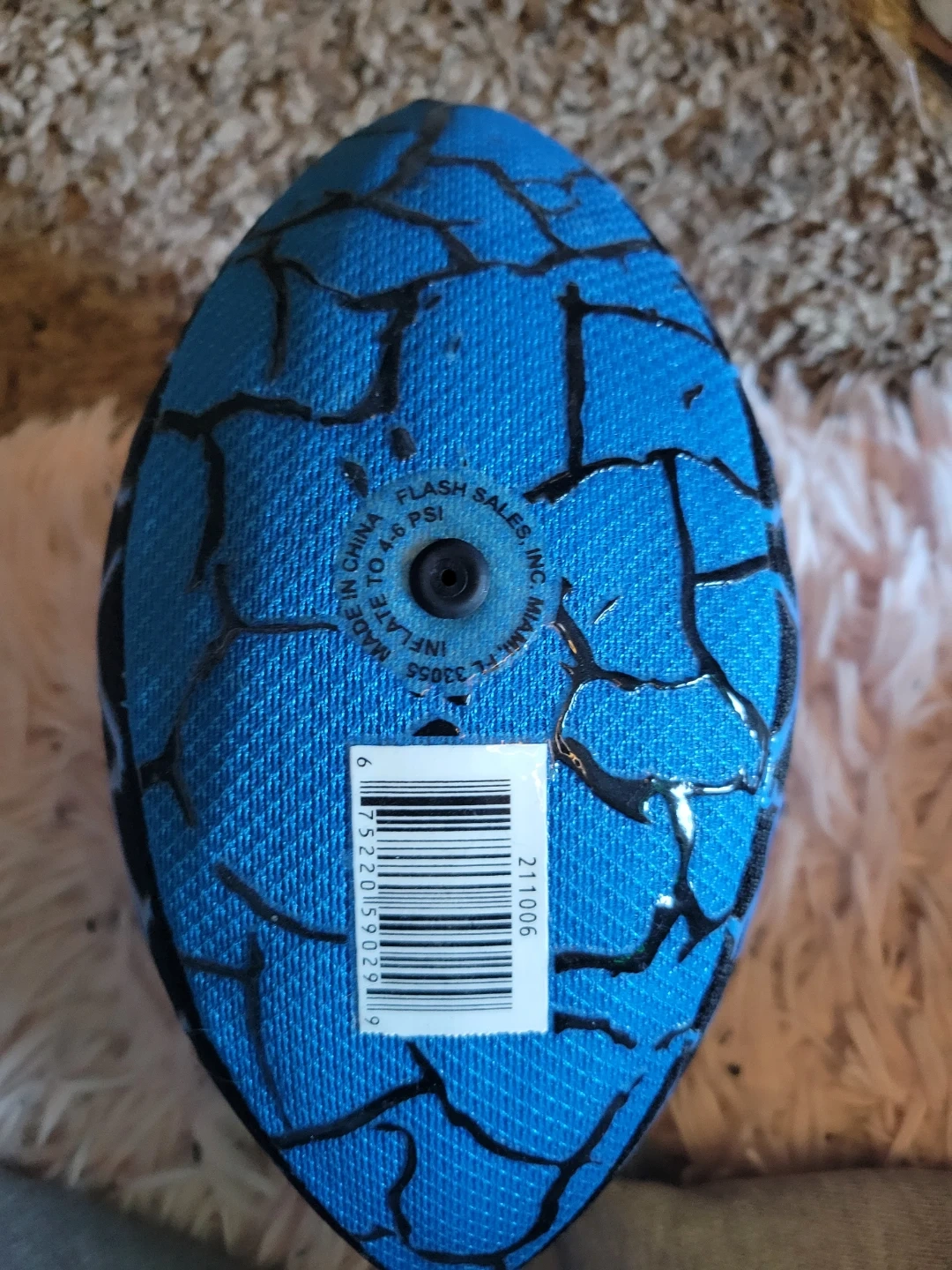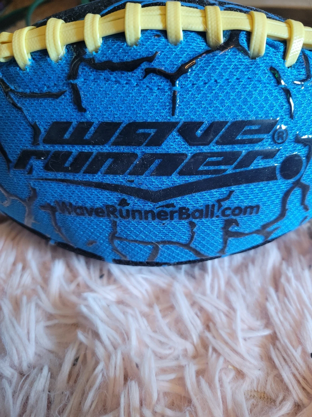 This is a blue Wave Runner football. It's designed for water play and inflates to 4.5 PSI. Its unique design makes it fun for tossing around at the beach or in the pool!
