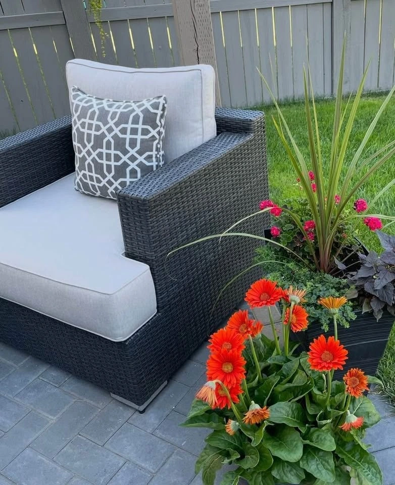 The chairs were from Costco and are sold $1500 for a pair, plus the storage boxes and custom covers. The round ottoman was $700 and the custom covers are $500 for each set.