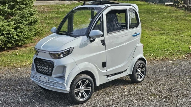 The epitome of fully enclosed mobility cars is here. Quality door panels, headliners & seats. Doors open & close with the sound & feel of an actual car. Not an LSV! Luxury like no other at a price cheaper than basic models. No license, registration or insurance needed. This is classified as an enclosed mobility scooter. Premium features you don't find on basic mobility cars: Up to 70km range & 34kph. 60V 58ah powerplant. Push button start. Air conditioning w/3 fan settings + heat. Illuminated power windows, power door locks, alarm, 2 fobs. Heater, AC, fan only & open settings. 2 speaker Bluetooth sound system w/USB, movie/media playback, FM radio etc. Hi-resolution backup camera. Sunroof & rear window open for max airflow. 3 speed settings w/further infinite variable speed dial to customize each speed setting. 3 modes of lighting for night time safety. Windshield wiper w/ washer fluid. Embossed soft touch premium reclining driver seat. Rear bench seat for storage or additional rider. Heavy duty axles w/ 4-wheel independent suspension. Optional 2nd bank of batteries under seat for extended range/emerg backup (100km max when installed). 1 yr limited warranty. Brantford. Call or text E-Dawg Motorsports anytime to set up a time and day to stop by to see one! {{519}} 754+ * 5056
