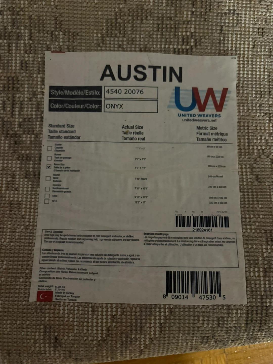 Rug (160 x 220 cm), purchased from HomeSense about 6 months ago for $100. Still very clean and in great condition—pet-free and smoke-free home.