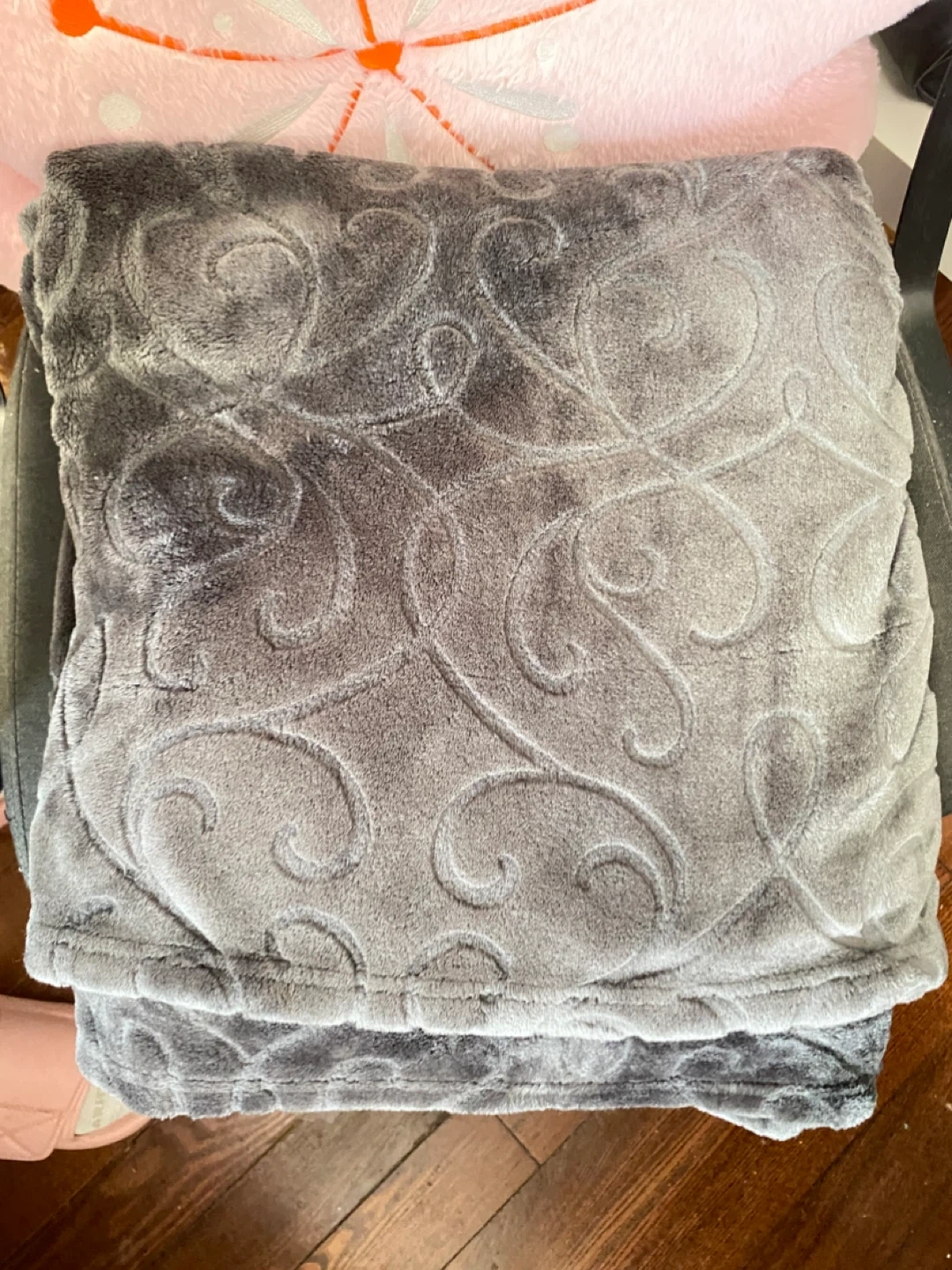 This cozy throw blanket is made from 100% polyester. It features a soft, embossed swirling pattern. It's perfect for staying warm on chilly evenings. Normal size, can be placed on any Queen size bed (or smaller). Please contact me for pick up. Cash please.