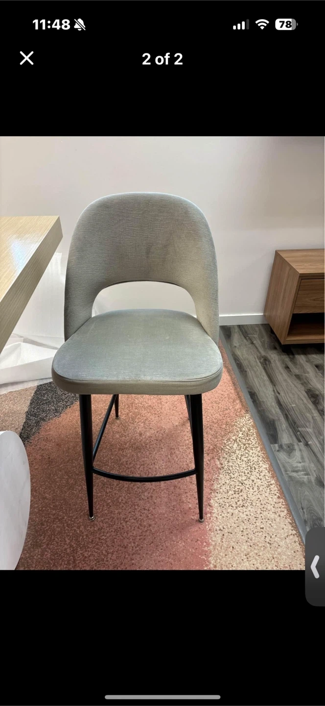 10Selling a grey bar stool. It's in great condition and would look great in any kitchen or bar area. The stool features a comfortable seat and a sturdy base. Commerical grade and was used for showroom 30” floor to seat 20” seat width