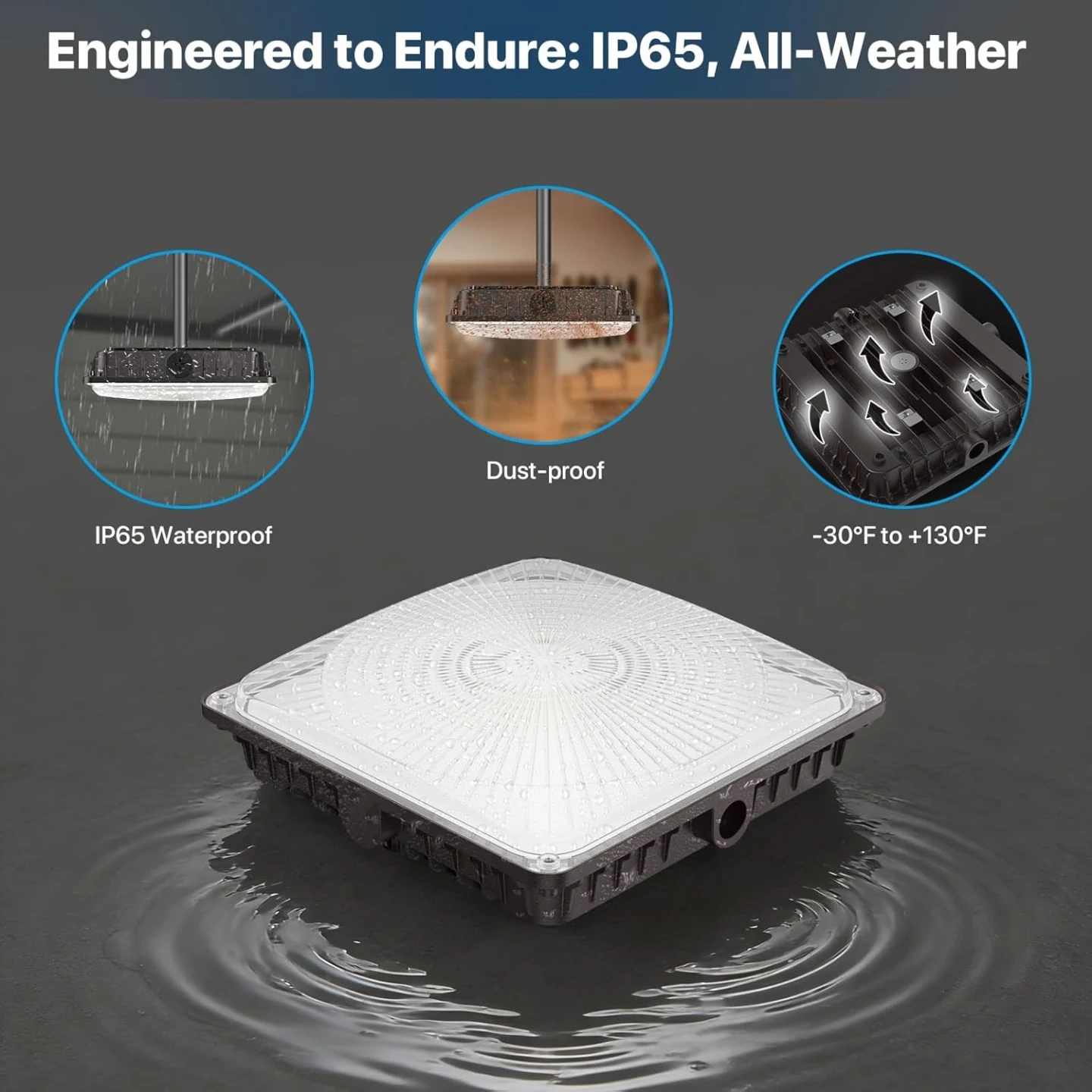 Made to Last: Constructed with solid die-cast aluminum housing and an innovative vented design for superior heat dissipation, corrosion resistance, and durability. The IP65 rating ensures reliable performance in all harsh outdoor conditions.