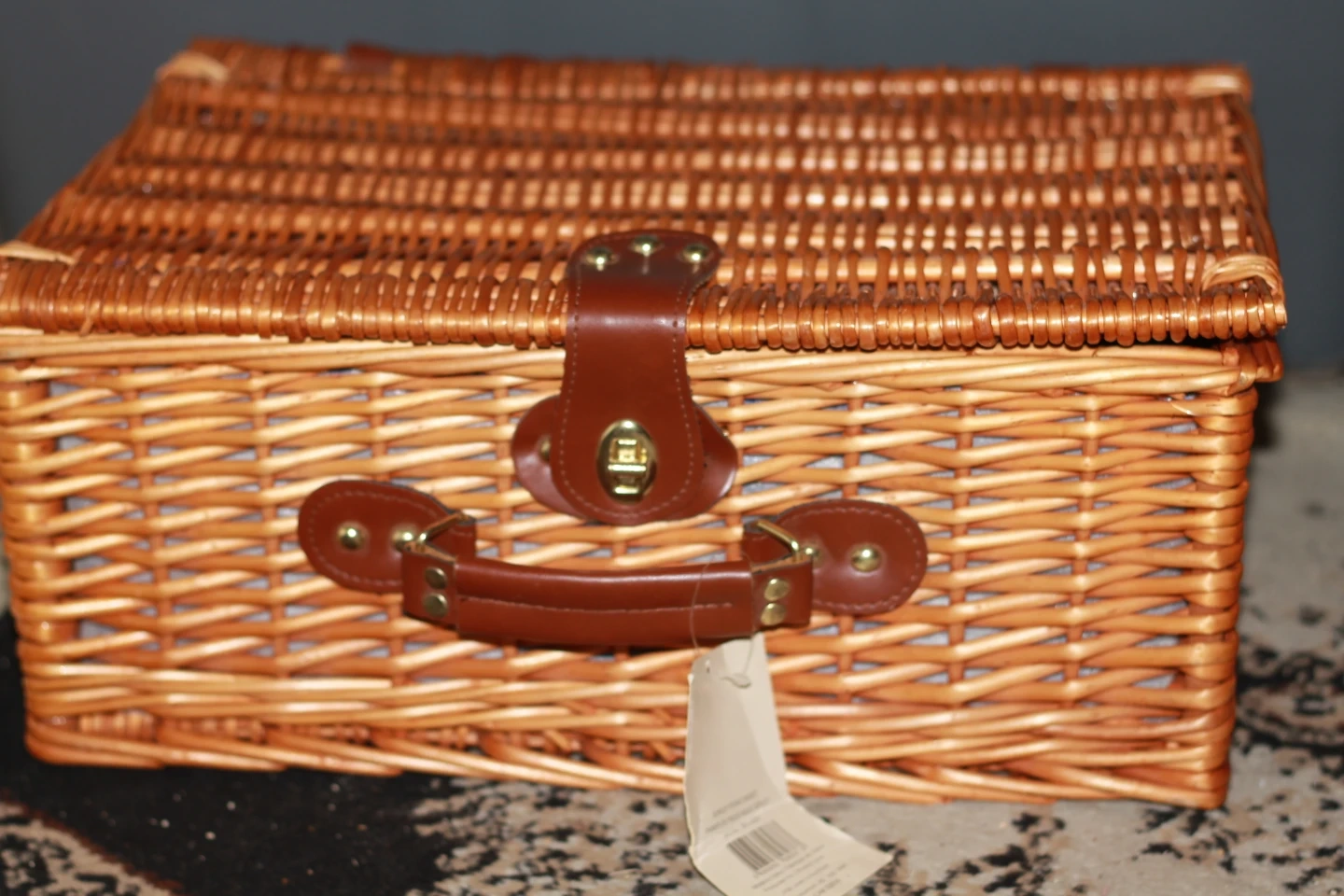 Wicker Picnic Basket with 4 Blue Cups