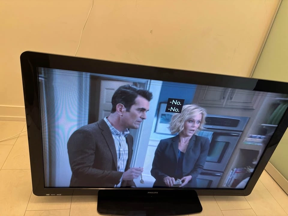Selling for cheap as it takes a few minutes to warm up and has a few lines at the top. You can see the before blue screen picture and after a few minutes the regular picture. Sound works great. Pickup in Liberty.