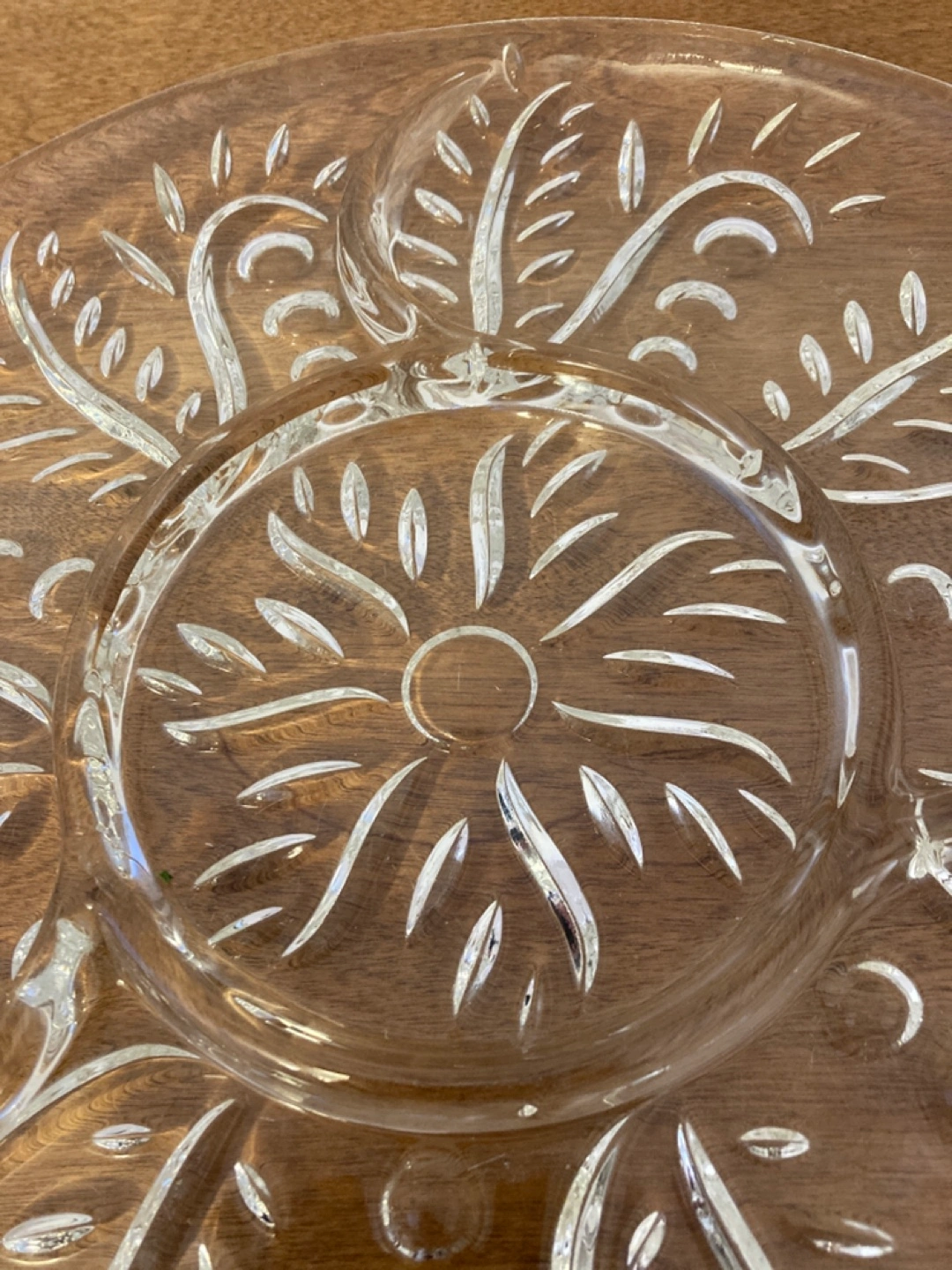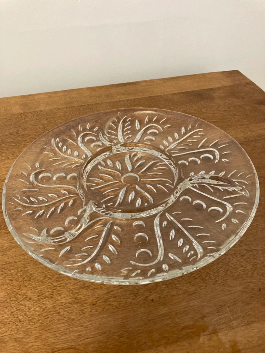 Beautiful vintage crystal serving platter. Intricate etched design. Perfect for parties or everyday use.