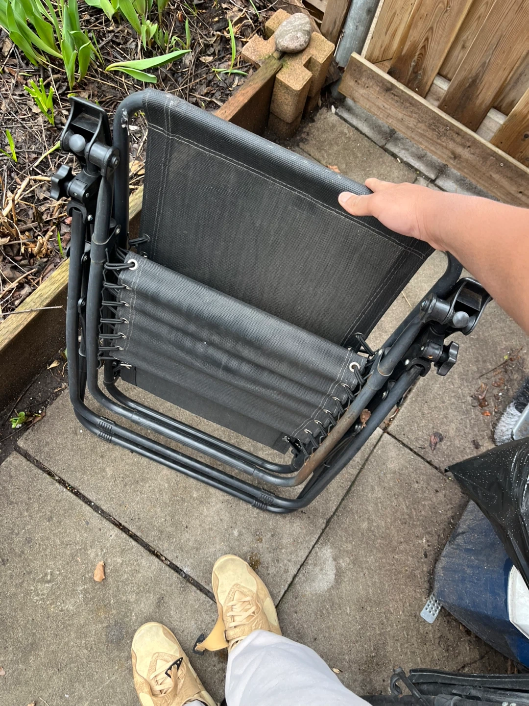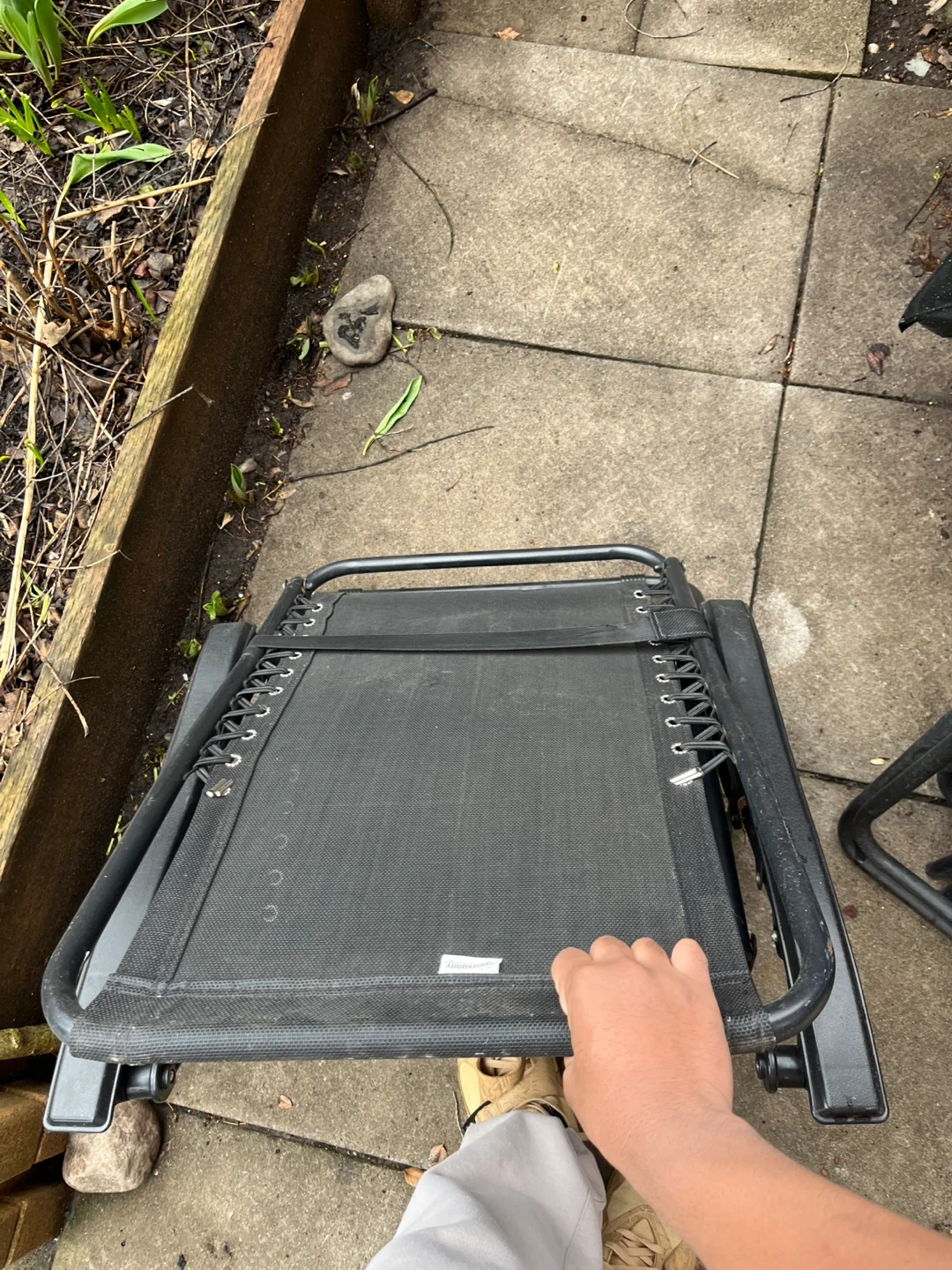 This black zero gravity chair has a durable mesh fabric and a sturdy metal frame. It's foldable for easy storage and transport. Perfect for relaxing on the patio or at the beach!