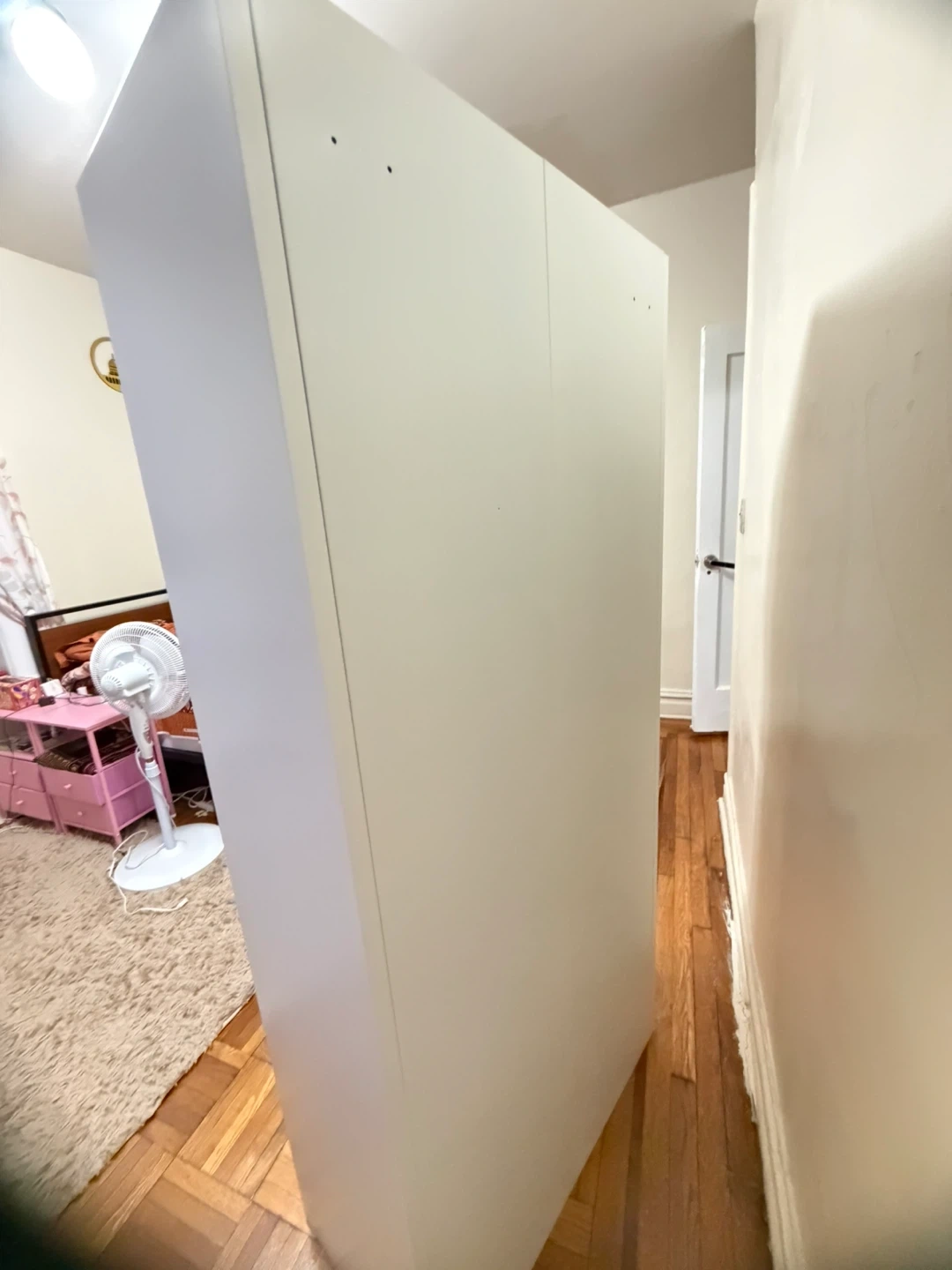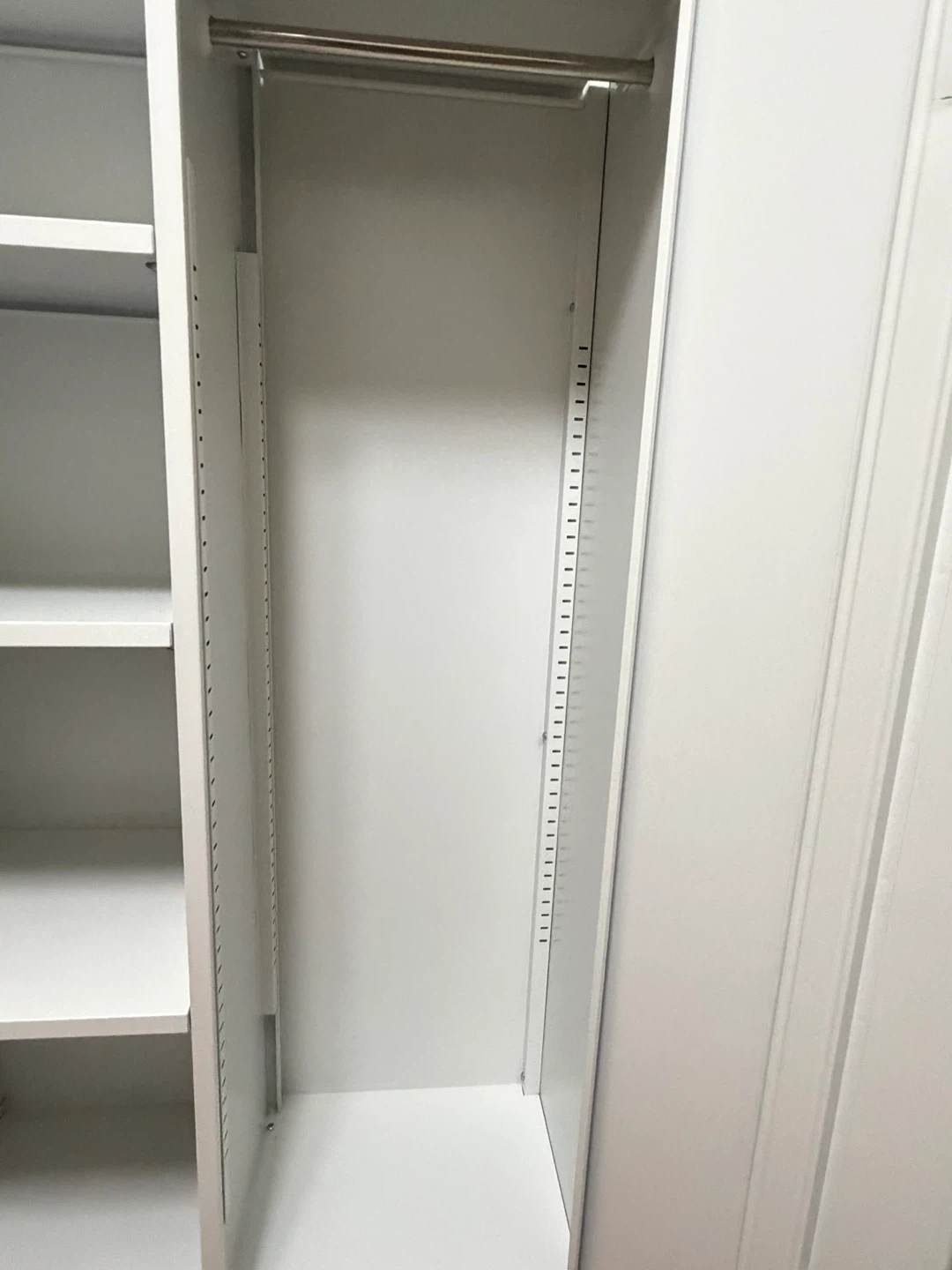 White Metal Storage Cabinet with Shelves and Hanging Rod