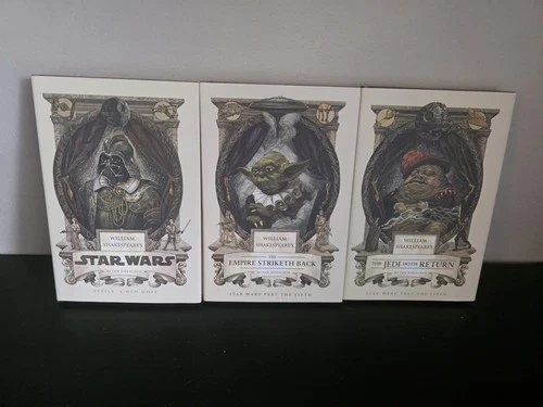Complete 3-book Shakespearean Star Wars set by Ian Doescher: Verily, A New Hope, The Empire Striketh Back, The Jedi Doth Return. Hardcover editions featuring the classic Shakespeare-style retelling of the original Star Wars trilogy. Unread copies, clean pages, bindings tight, no writing or markings found. Matching set — great for collectors or gift giving. Fun crossover collectible for Star Wars fans and literature lovers alike.