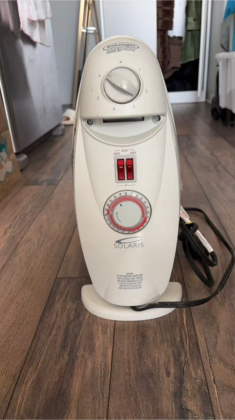 Selling a DeLonghi Solaris electric space heater! It's in good condition and ready to keep you warm. It features adjustable settings and a timer for your convenience. Originally bought for $159.93