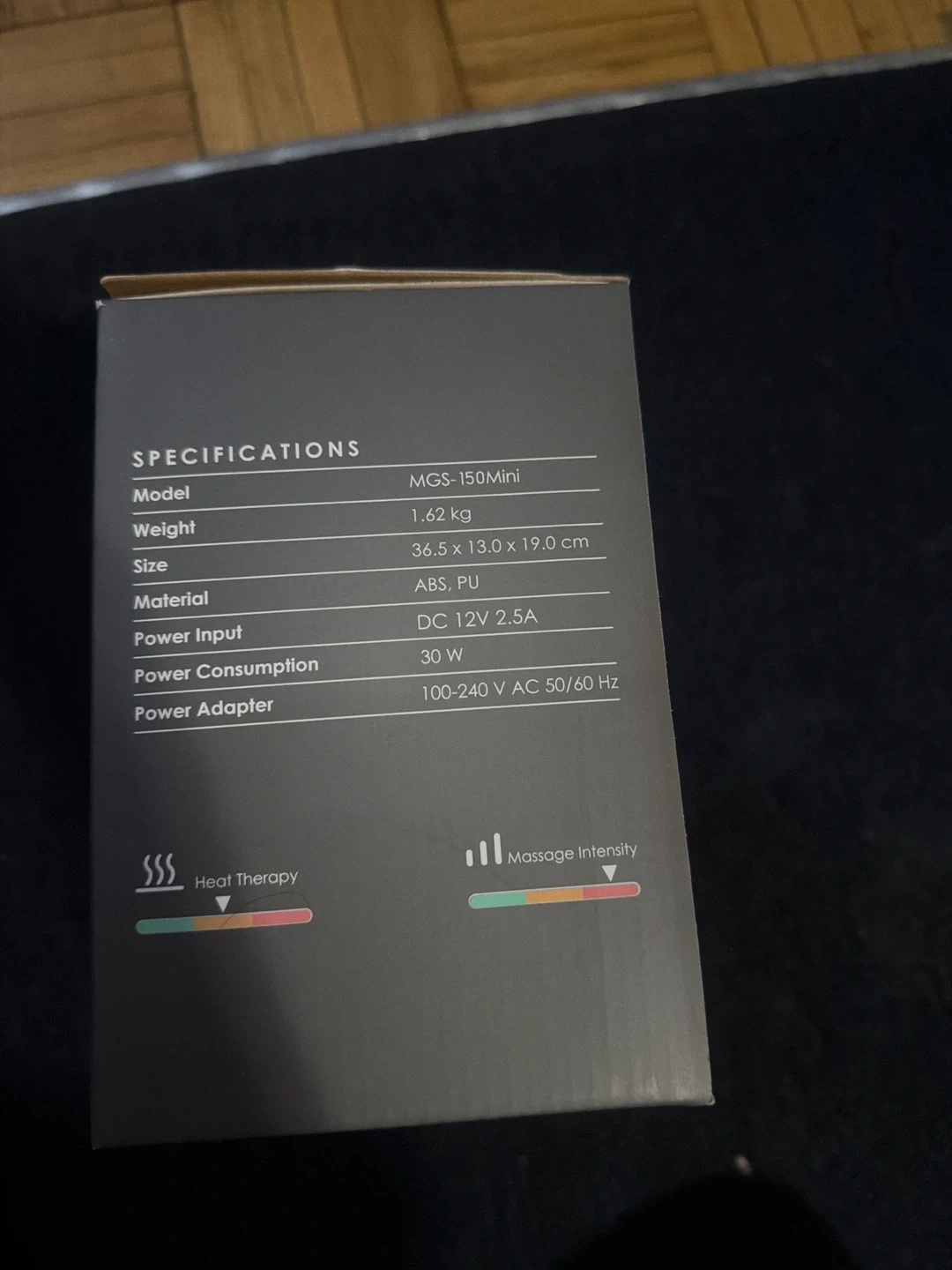 This Marnur Shiatsu massager offers 3D rotating nodes and gentle heat for neck and shoulder relief. It features adjustable speed, deep kneading, and a U-ergonomic design. The unit's dimensions are 36.5 x 13.0 x 19.0 cm. Includes power adapter for home or office use.