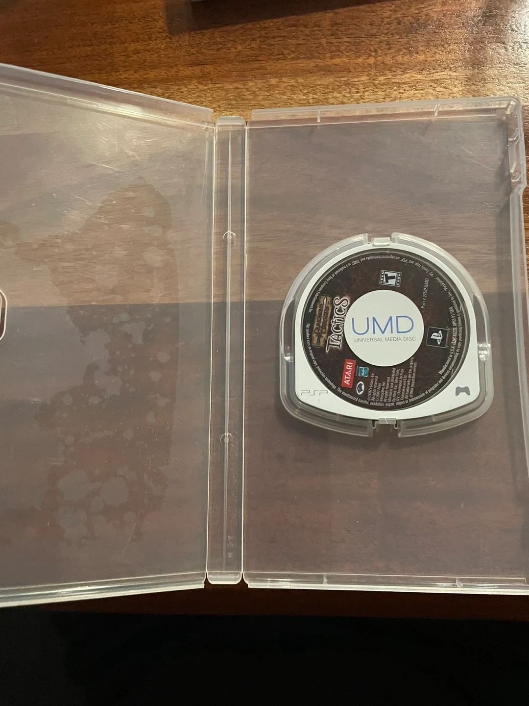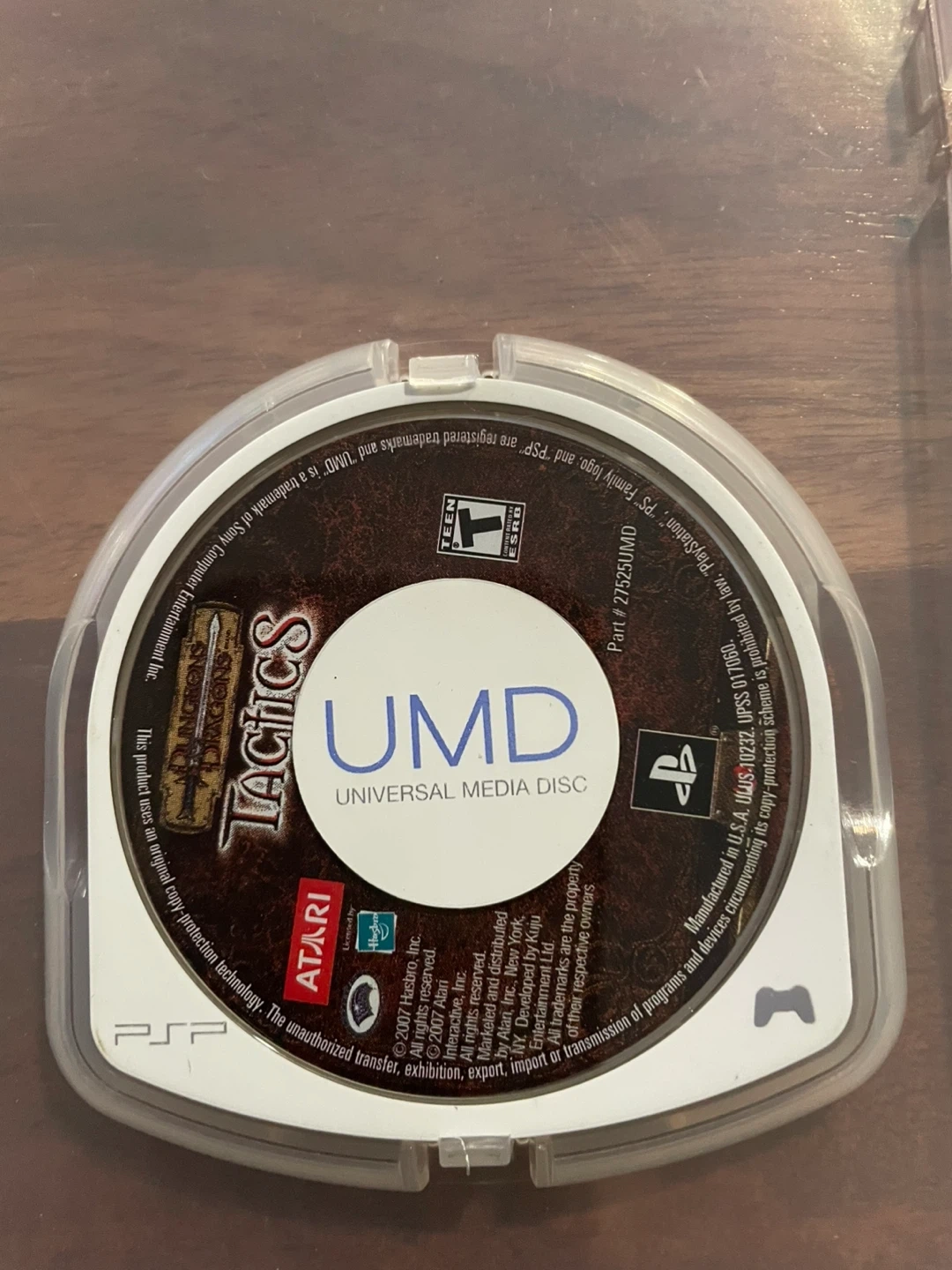 This is the Dungeons & Dragons Tactics UMD for the PSP. It's a universal media disc for the console. The game is rated T for Teen.