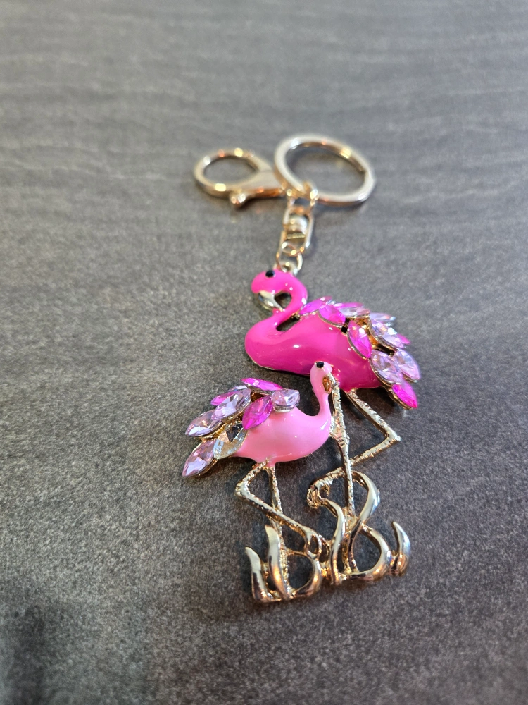 Final price drop. New. Features two flamingos in pink and rose gold with some sparkly rhinestones. 5.5"×2". Cross-posted.