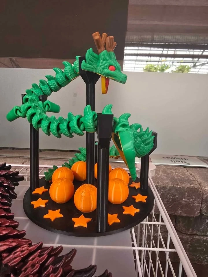 Shenron from Dragon Ball Z with dragon ball stand. All 3D printed. Shenron is fully articulated and will provide endless hours of fun imaginative play. $50 for Shenron and stand. Can be done in any colors you like.