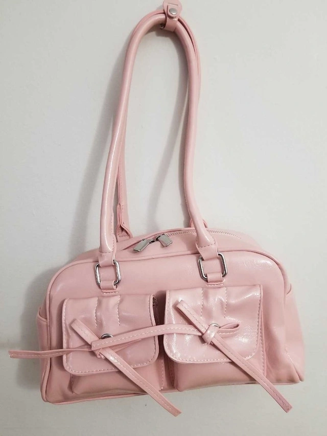 This charming pink purse is the perfect accessory to add a pop of colour to your outfit, featuring a unique front pocket design and comfortable shoulder straps. As you can see from the pictures, it is in used condition. I've always said purses are like potato chips, you can't have just one, and this one could be yours! Cash accepted.