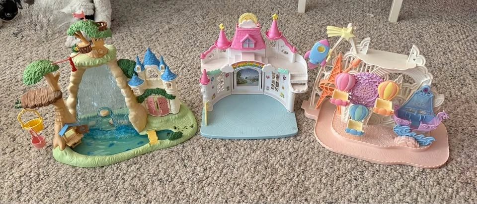 These are three Sylvanian Families play sets. They are missing a few pieces. Asking $80 for all three. Together, these sets would retail for over $400.