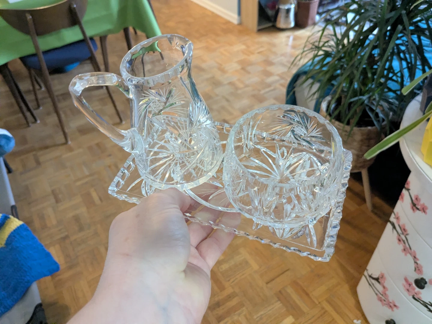 Crystal cream and sugar Set on Tray