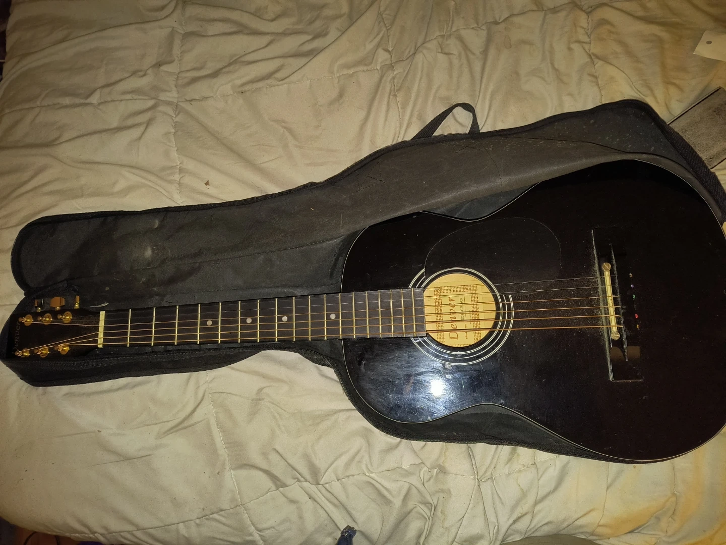 *pickup only*This is a black acoustic guitar that comes with a gig bag and a small bag of accessories. The guitar is in its case. It's a great starter instrument! Used less than 5 times in the last decade