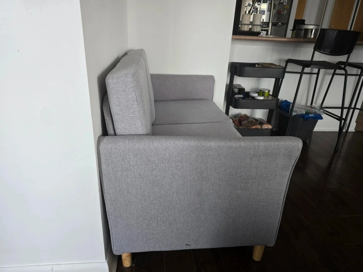 Selling a comfy white sofa, perfect for any living room! It comes with two black pillows to complete the look. Great for relaxing and watching your favourite shows
