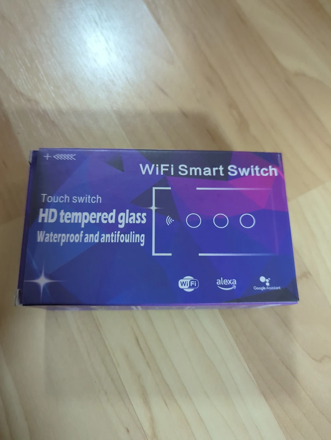 This is a WiFi Smart Switch with a HD tempered glass touch surface. It's waterproof and antifouling. Works with Alexa and Google Assistant. It supports AC100-240V and 1000W per gang. This switch offers convenient smart home control.