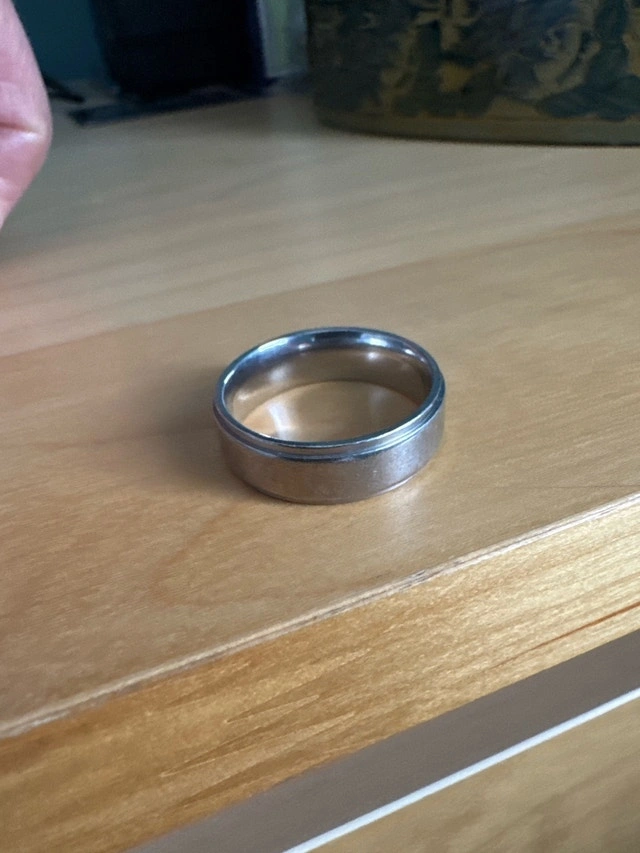 Offering a pre-owned stainless steel ring in size 10, perfect for adding a touch of rugged style. This durable stainless steel ring features a simple design with diamond chips. It is in used condition, as shown in the photos. Material: Stainless Steel. Size: 10. Cash accepted. Cashless payment accepted.