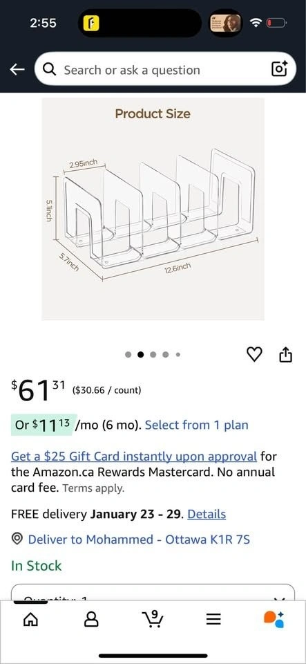 This clear acrylic desktop organizer is perfect for keeping your books and magazines tidy! It can also be used as a handbag or clutch divider. The dimensions are 2.95 inches x 5.1 inches x 5.7 inches x 12.6 inches. Comes in the original box!