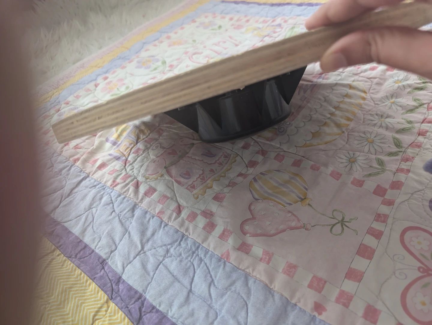 Wooden balance board with a textured top surface for grip. It has a black rotating base for dynamic movement. Great for improving core strength and balance!