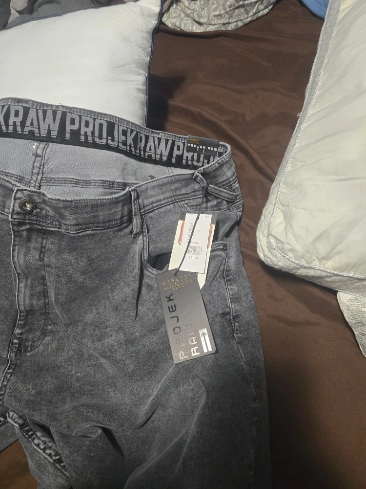 Selling a pair of Projek Raw grey jeans that are brand new with tags! They have a stylish look and are ready for a new home. Feel free to message me with any questions!