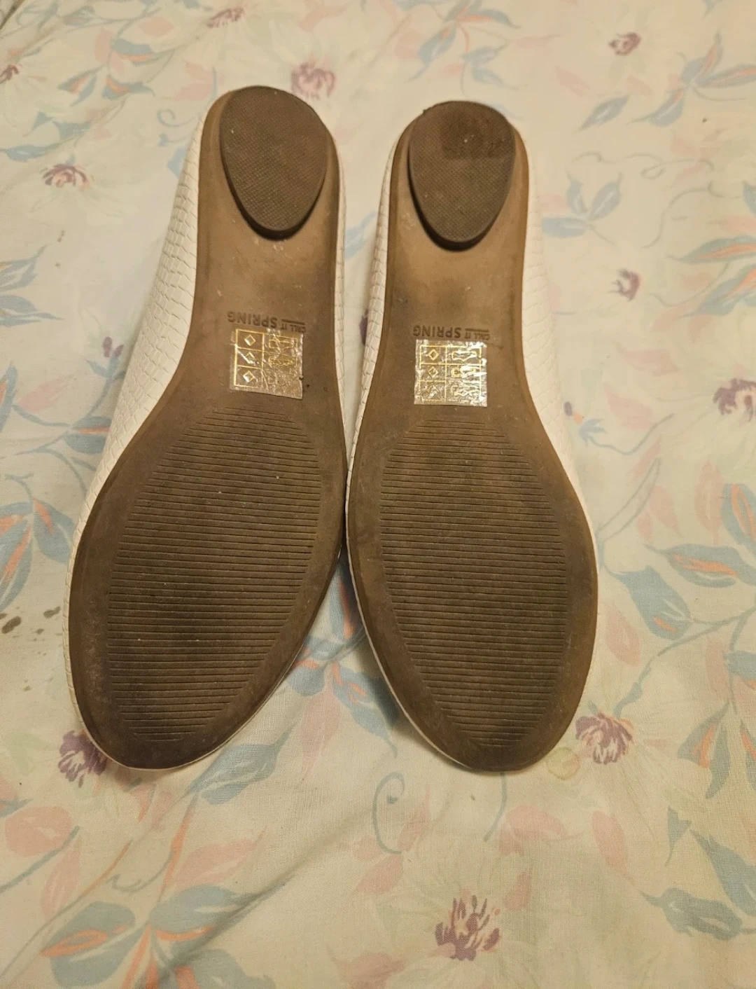 Selling a pair of Call It Spring Brevia flats in a size 7.5. They have a stylish white snakeskin-like texture. The original box is included!