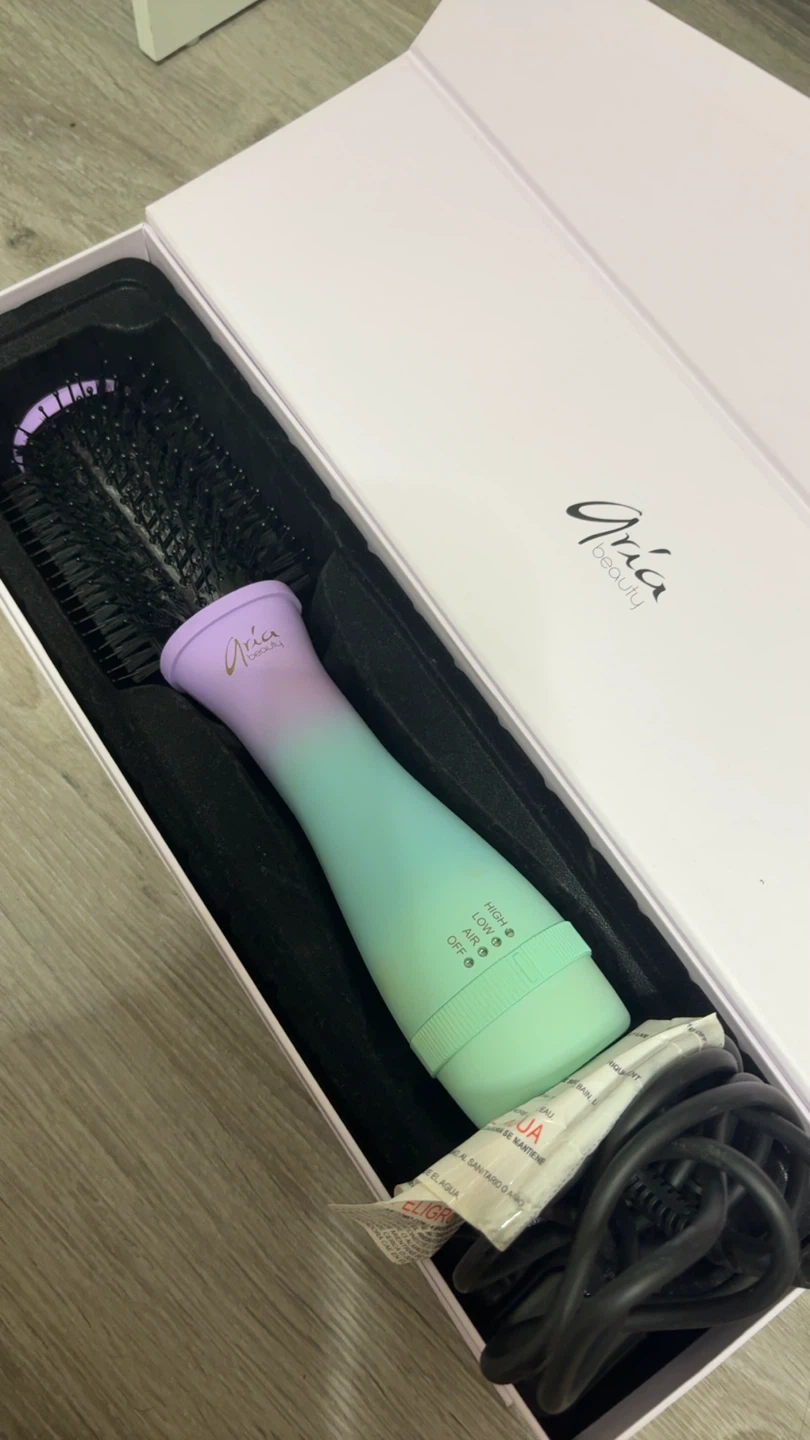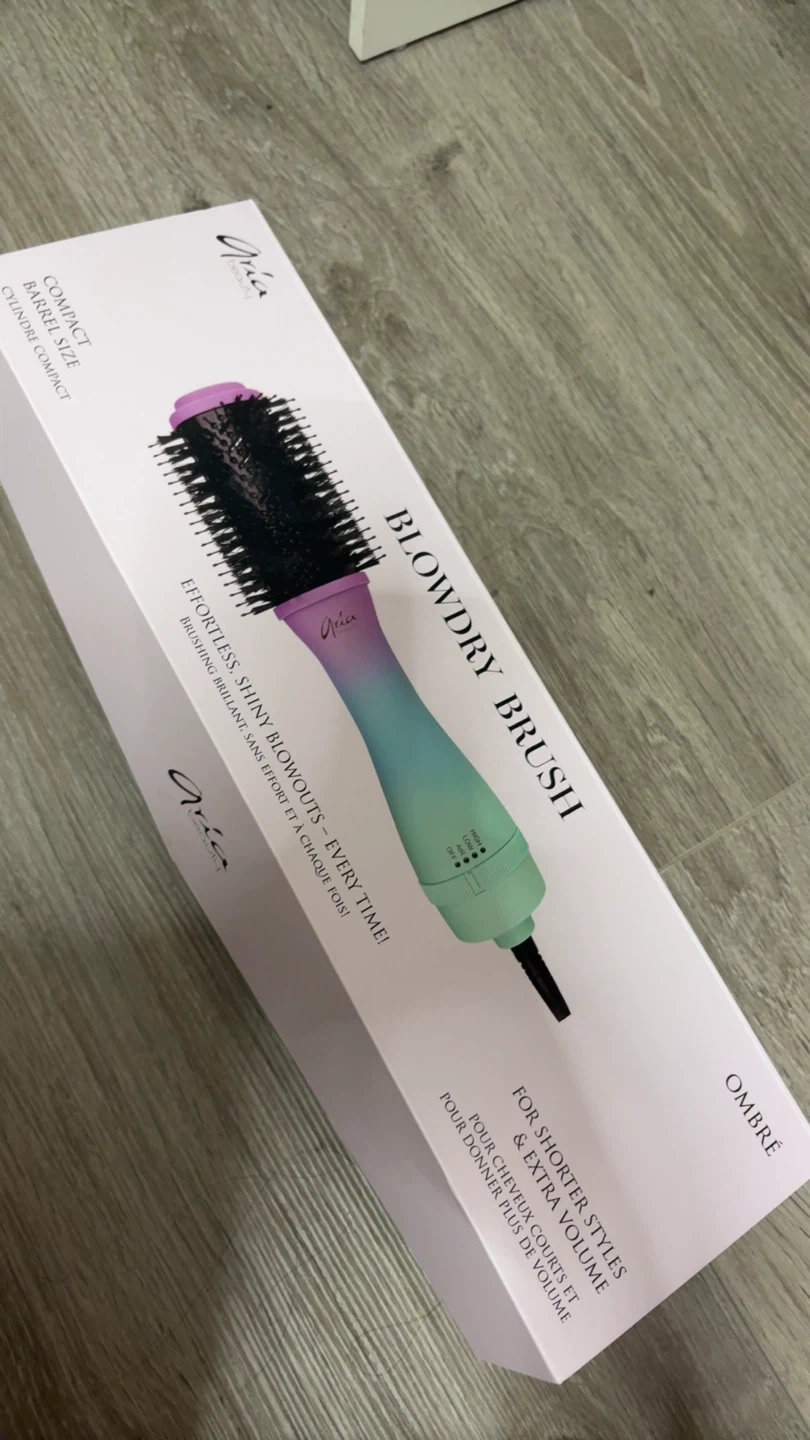 This Aria Beauty blowdry brush features an ombre design and is designed for shorter styles and extra volume. It offers heat settings for airflow control. It's perfect for achieving effortless, shiny blowouts.