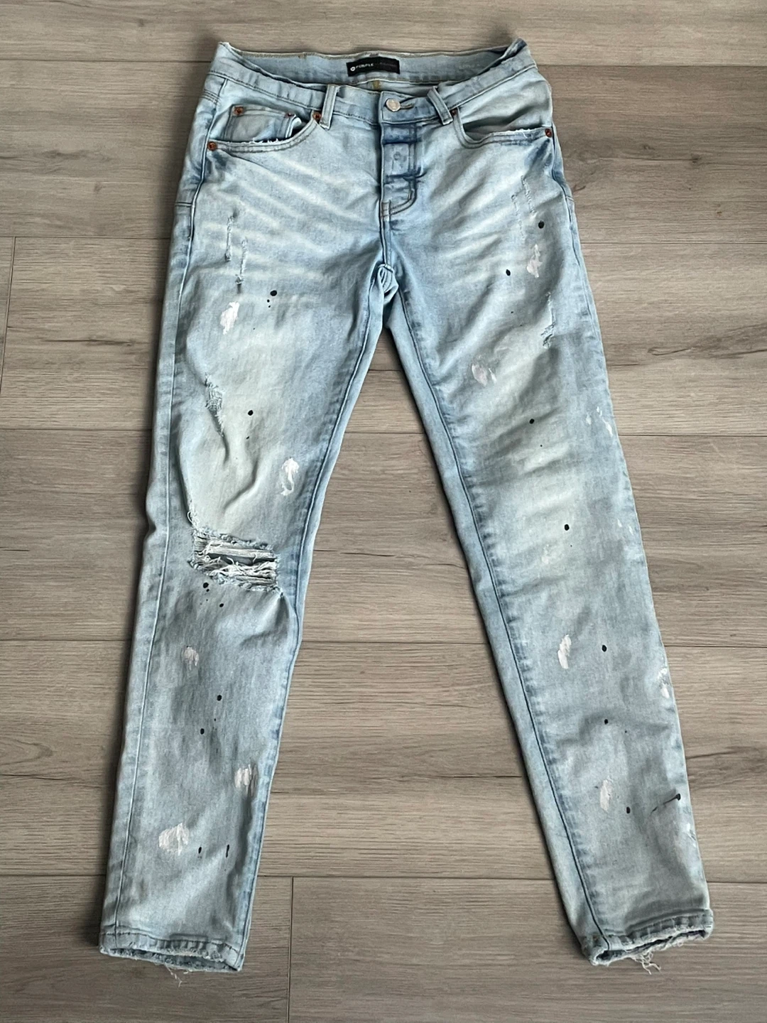 Purple Brand Light Wash Distressed Jeans with Paint Splatter**